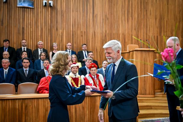 Menovací dekrét si prevzala ešte v júni toho roku vo Veľkej aule Karolina v Prahe z rúk prezidenta Českej republiky Petra Pavla a ministra školstva, mládeže a telovýchovy Mikuláša Beka.