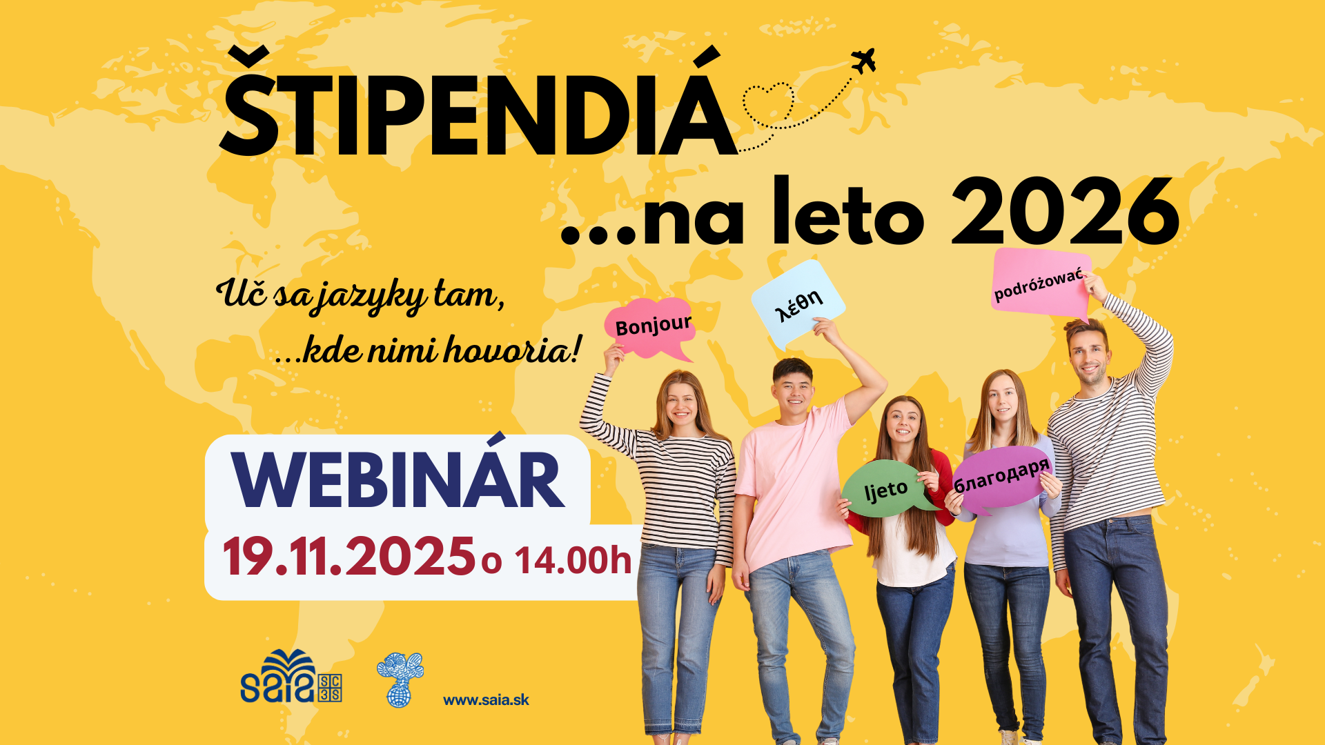 Štipendiá na leto 2026 (Uč sa jazyky tam, kde nimi hovoria) (webinár SAIA, 19. 11.)