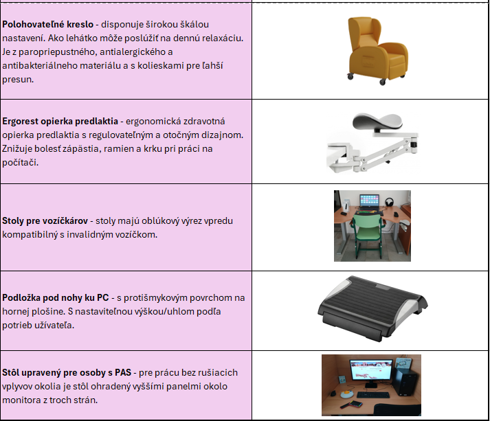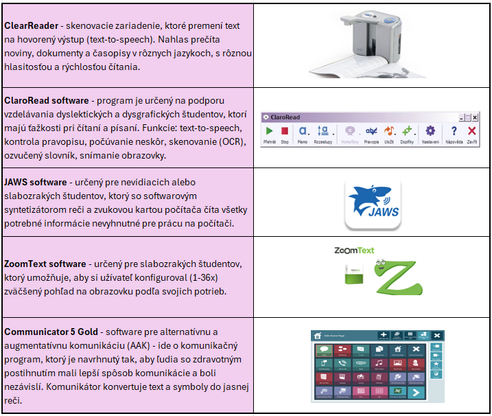 Opis jednotlivých pomôcok a technológií:
