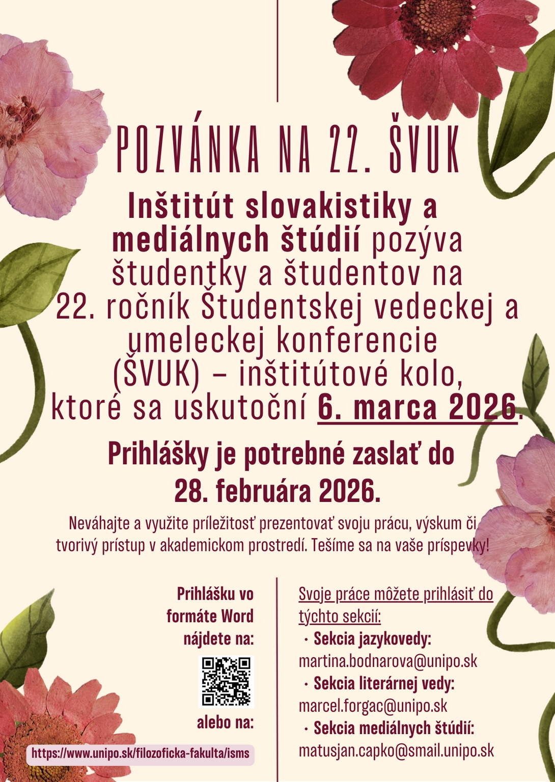 22. Študentská vedecká a umelecká konferencia ISMŠ – pozvánka a prihláška