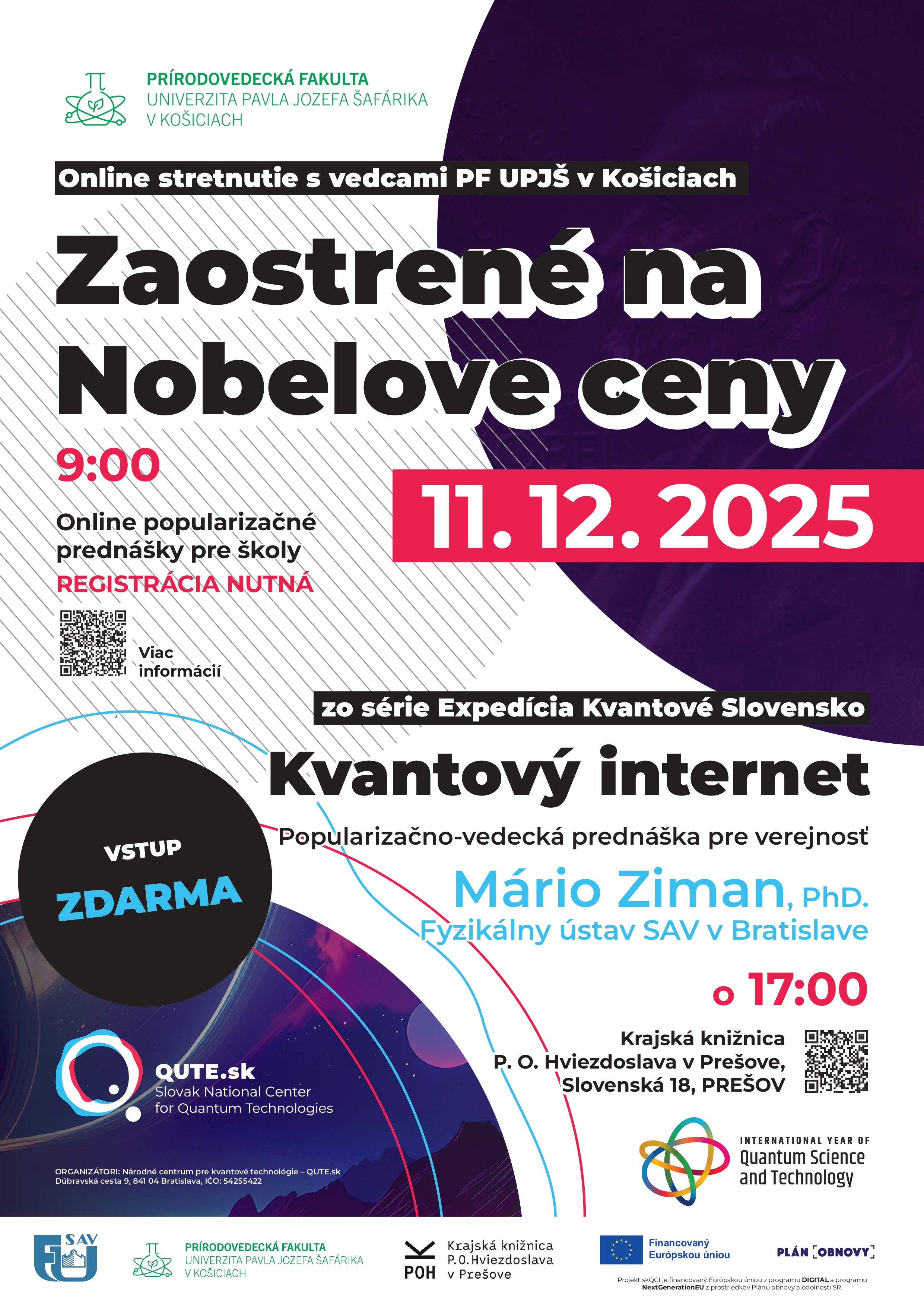 Prelom vo vede! V Košiciach a v Prešove 11. decembra 2025 prepíšu históriu slovenskej kybernetickej bezpečnosti. Univerzita Pavla Jozefa Šafárika v Košiciach (UPJŠ) a Prešovská univerzita (PU) v Prešove oficiálne spustí pilotnú QKD (Quantum Key Distribution) linku na báze optických vlákien. Toto kvantové prepojenie je prvou fázou budovania Slovenskej kvantovej komunikačnej infraštruktúry (skQCI) a prináša teoreticky neprelomiteľné šifrovanie. Slovensko tak odpovedá na globálnu hrozbu kvantových počítačov, ktoré dokážu prelomiť súčasné kryptografické metódy.