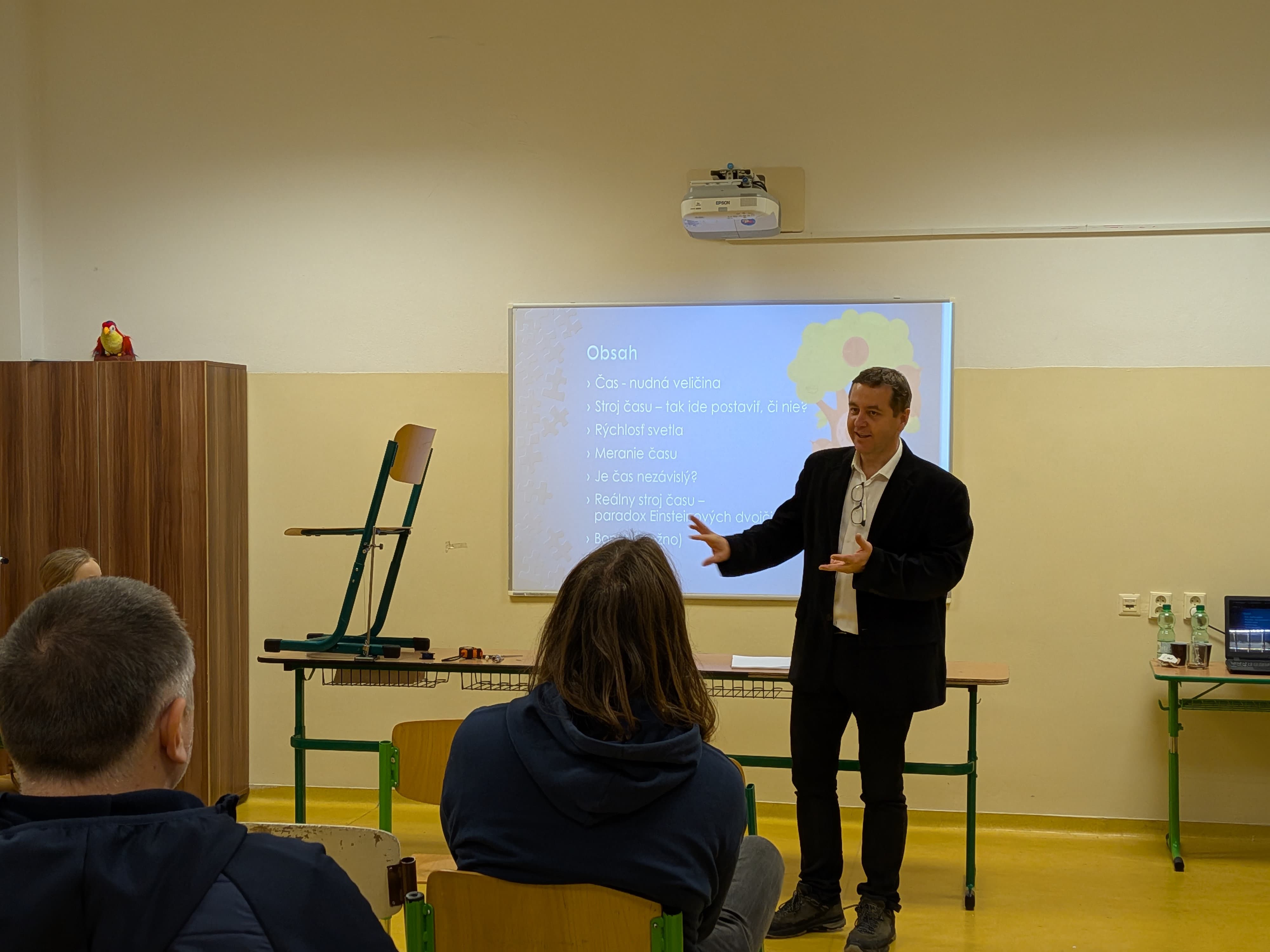 Noc vedy a literatúry na ZŠ ČSA Dňa 27. novembra o 16:00 hod. sa v budove ČSA uskutočnila Noc vedy a literatúry, na ktorej sa podieľali pracovníci oddelenia fyziky KFMT. Témou bol ČAS. Galéria Galéria Aktualizoval(a): Sergej Iľkovič , 28.11.2025