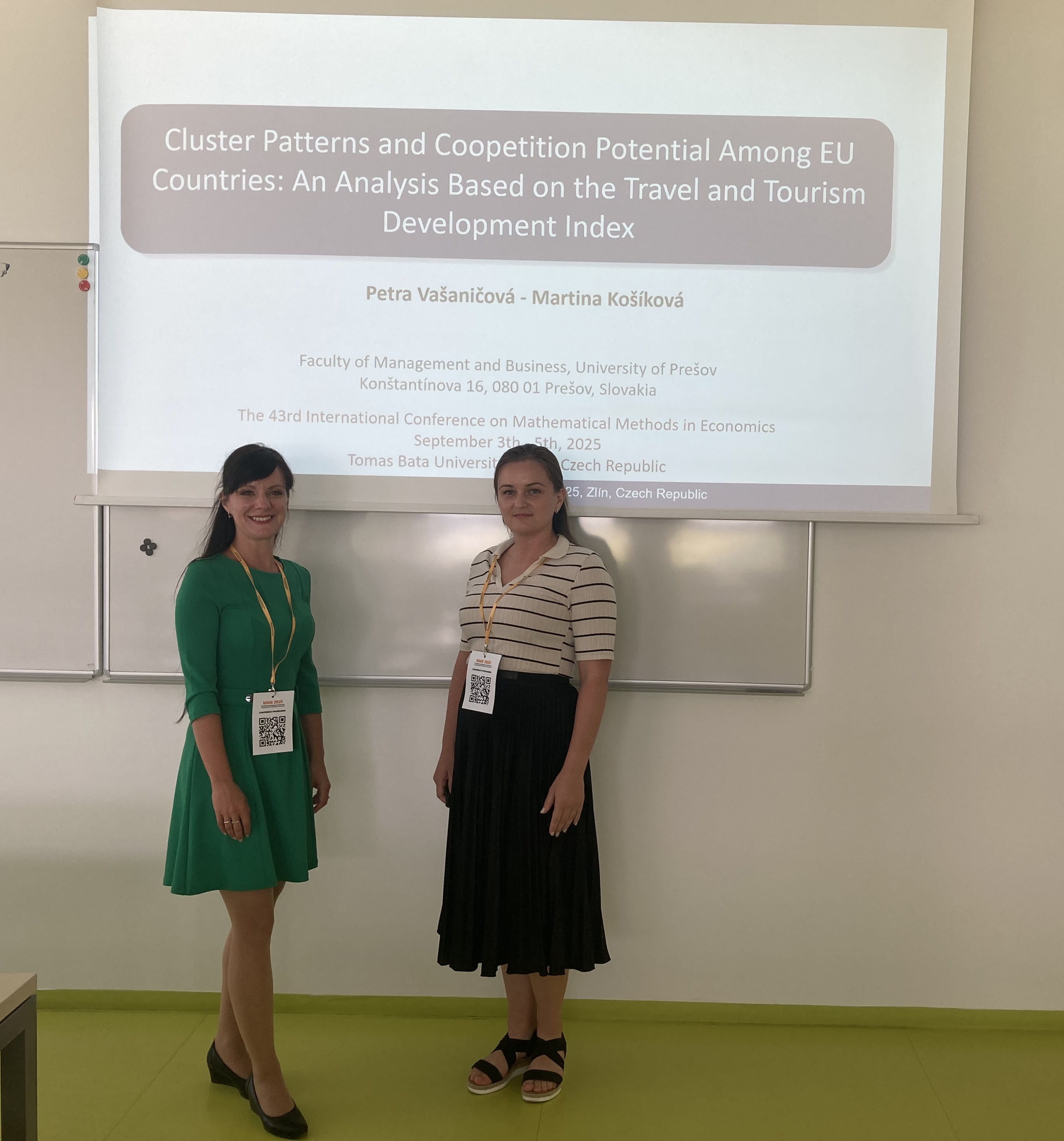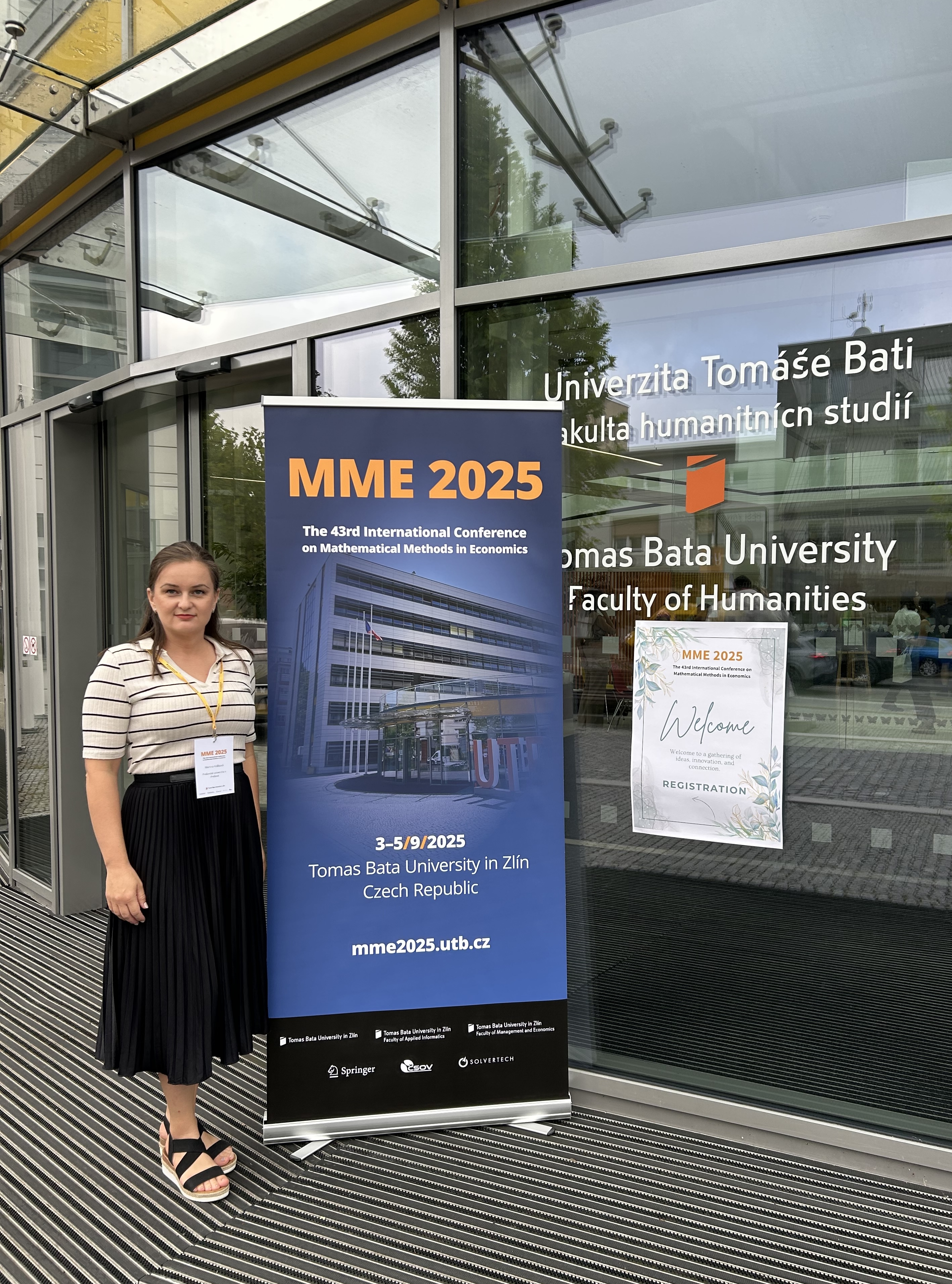 V dňoch 3. - 5. septembra 2025 sa na pôde Univerzity Tomáše Bati v Zlíne uskutočnil 43. ročník medzinárodnej vedeckej konferencie Mathematical Methods in Economics (MME 2025), ktorú organizovala Fakulta aplikovanej informatiky a Fakulta managementu a ekonomiky Univerzity Tomáša Bati v Zlíne v spolupráci s Českou spoločnosťou pre operačný výskum. Na medzinárodnej konferencii zaoberajúcej sa matematickými metódami v ekonómii sa aktívne zúčastnili členky KFUMM doc. PhDr. Petra Vašaničová, PhD. a Mgr. Martina Košíková, PhD. Príspevok je jedným z výstupov projektu VEGA 1/0241/25.
