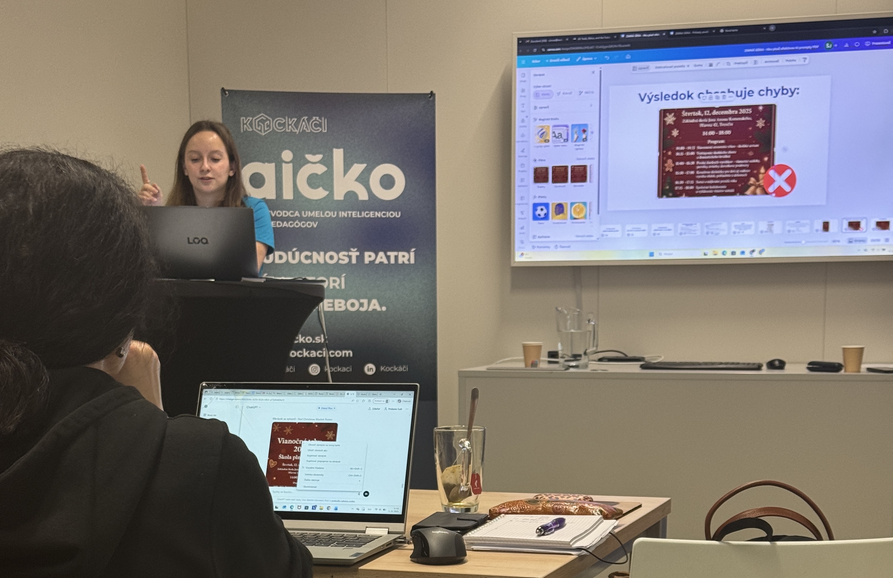 Dňa 5. decembra 2025 sa v priestoroch UVP Technicom v Košiciach členky KFUMM, doc. Ing. Sylvia Jenčová, PhD. a Mgr. Martina Košíková, PhD., zúčastnili na workshope o využití umelej inteligencie vo výučbe. Cieľom workshopu bolo praktické využitie a práca s nástrojmi ako ChatGPT, Canva AI, AI plánovače, automatické opravy testov, detektory plagiátorstva a mnoho ďalších využiteľných v procese výučby. Na podujatí boli prezentované užitočné postrehy o nových trendoch AI, interaktívne aktivity zamerané na rozpoznávanie AI obsahu a simulácia “zahraj sa na AI”.