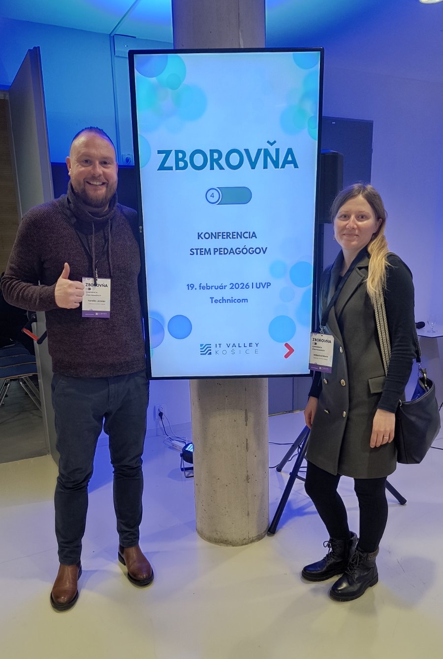Dňa 19. februára 2026 sa v priestoroch UVP Technicom v Košiciach uskutočnilo podujatie Zborovňa - konferencia pre STEM pedagógov. Konferencia bola zameraná predovšetkým na trendy, ktoré formujú vzdelávanie, digitálnu zodpovednosť a umelú inteligenciu. Na konferencii odznela pestrá ponuka prednášok, workshopov a panelových diskusií, ktoré priniesli cenné poznatky, inšpiratívnu atmosféru na výmenu skúseností a nápadov. Na konferencii sa zúčastnili členovia projektu KEGA 001PU-4/2025, Ing. Jaroslav Korečko, PhD., Mgr. Martina Košíková, PhD. a Mgr. Marta Miškufová, PhD.