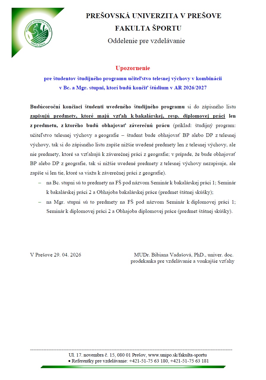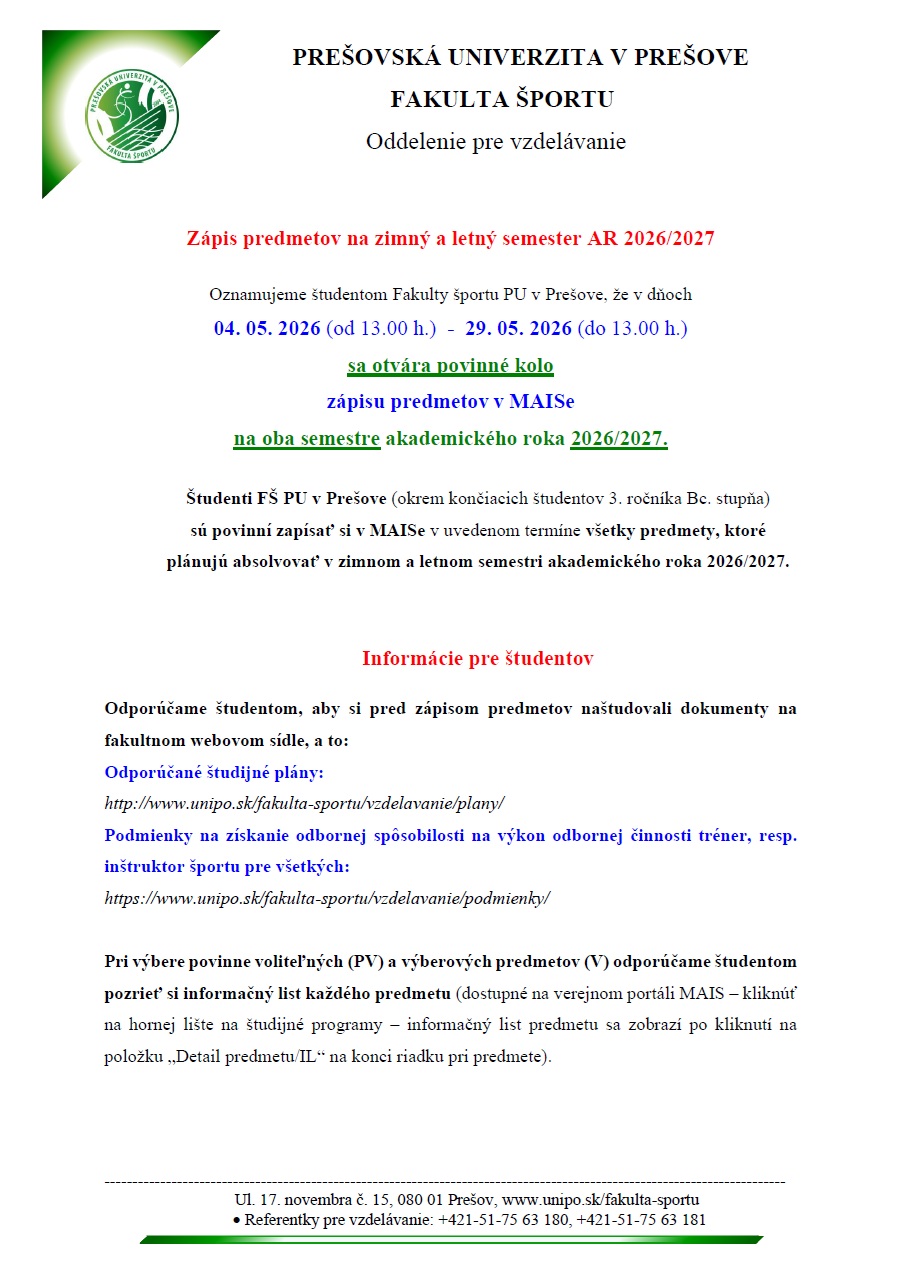 Úvod do vysokoškolského štúdia pre študentov 1. ročníka Bc. štúdia