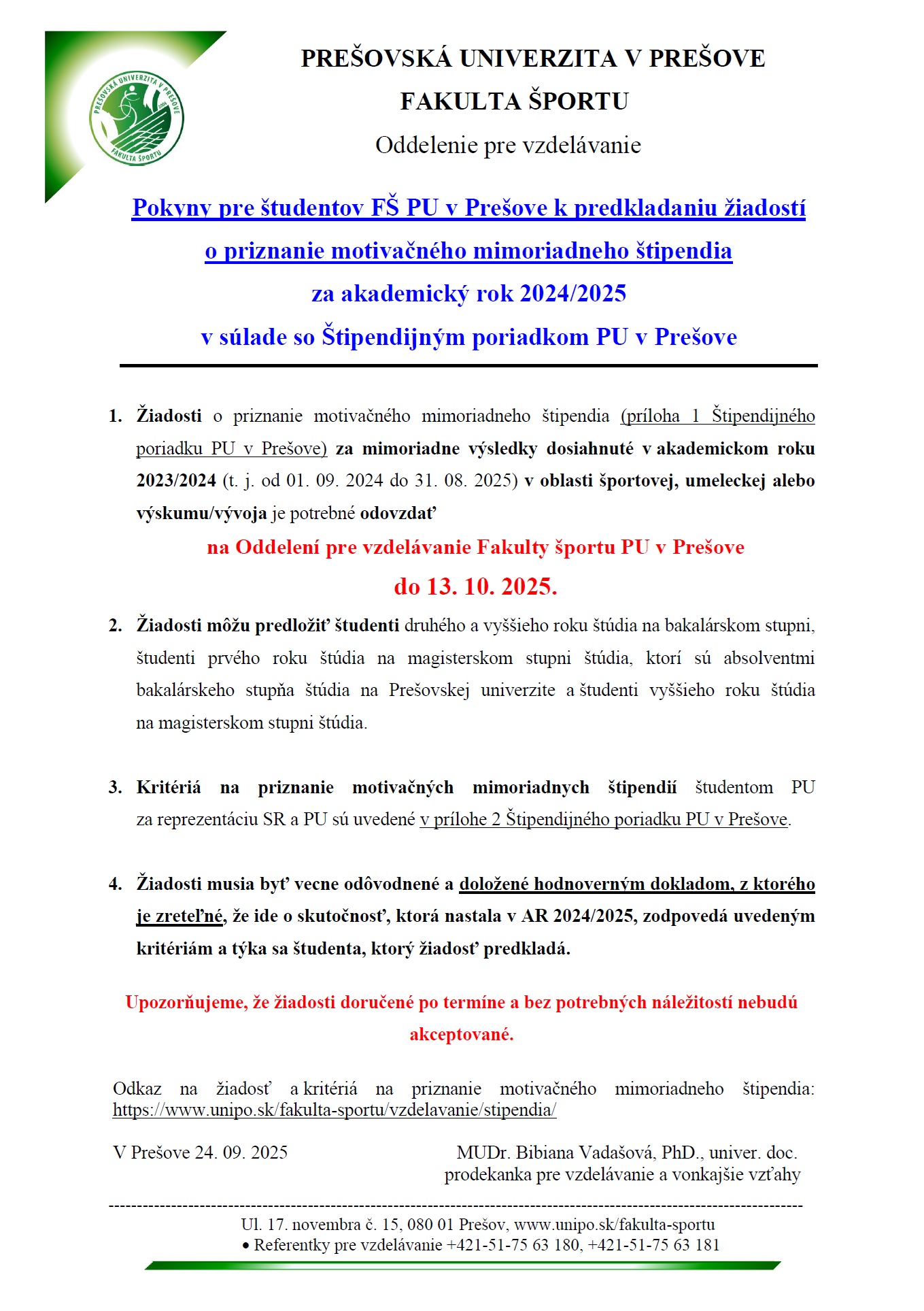 Predkladanie žiadostí o mimoriadne motivačné štipendiá za AR 2024/2025 Galéria Galéria Aktualizoval(a): Jaroslav Sekerák , 24.09.2025