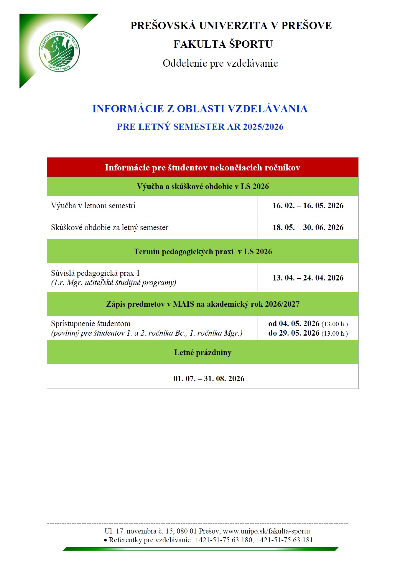 Informácie z oblasti vzdelávania - LS AR 2025/2026 Galéria Galéria Aktualizoval(a): Jaroslav Sekerák , 12.02.2026