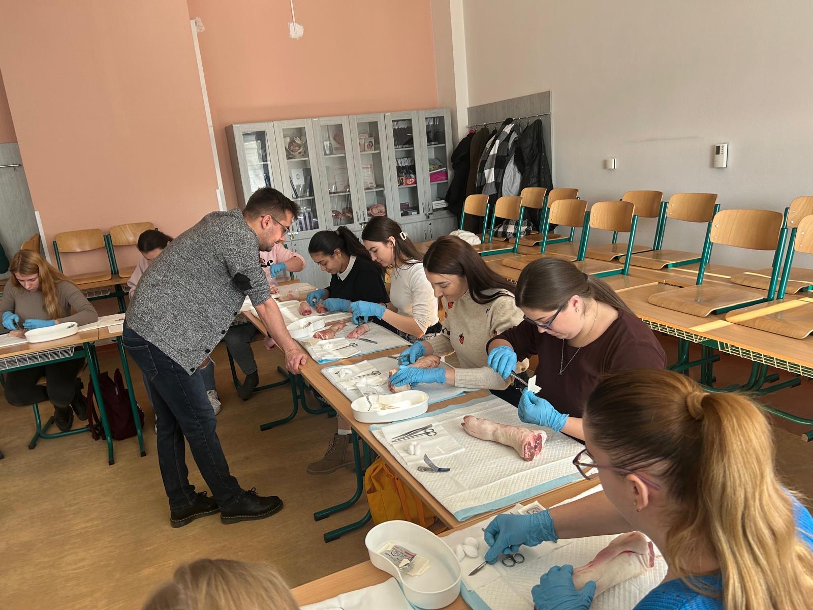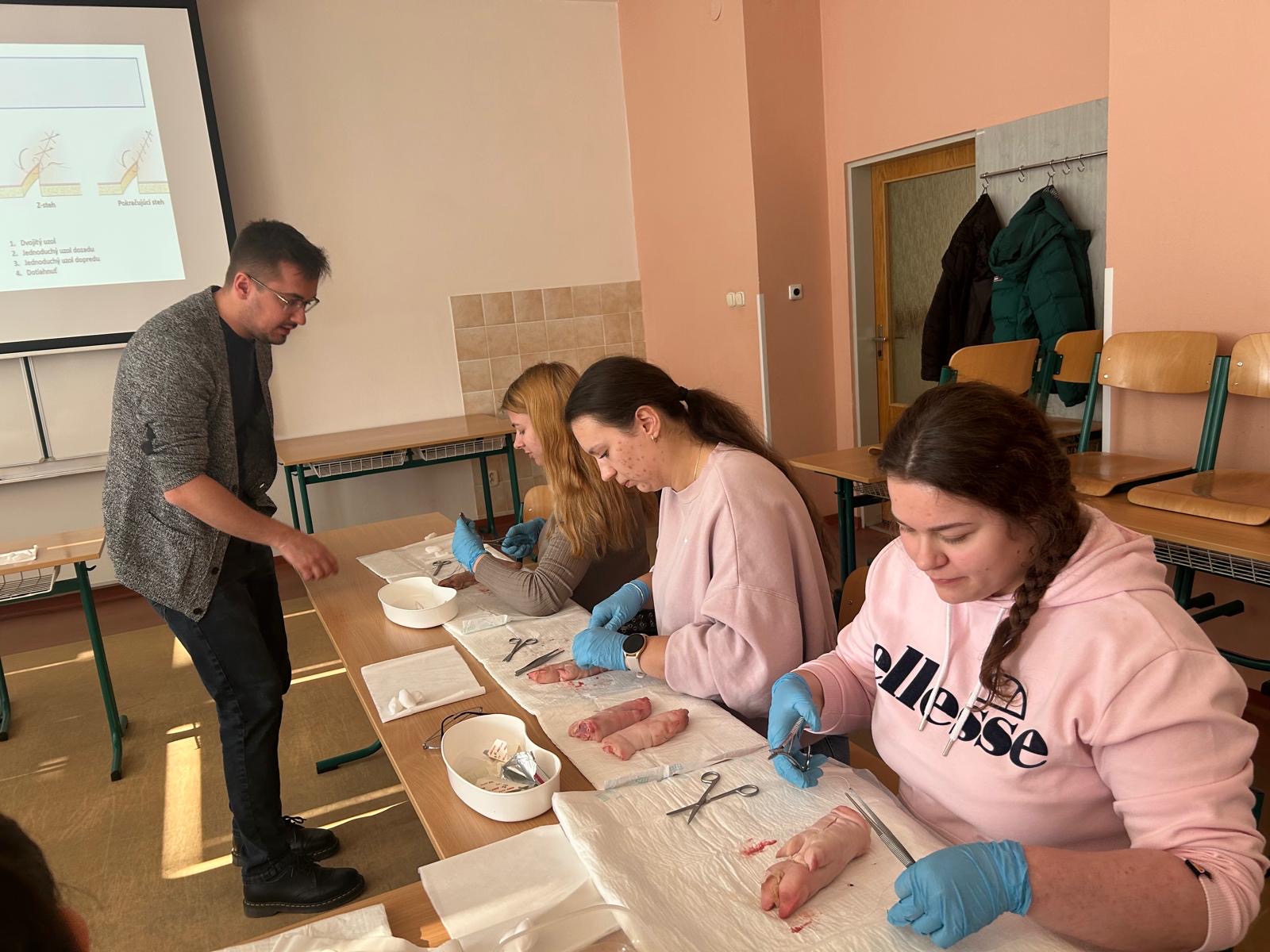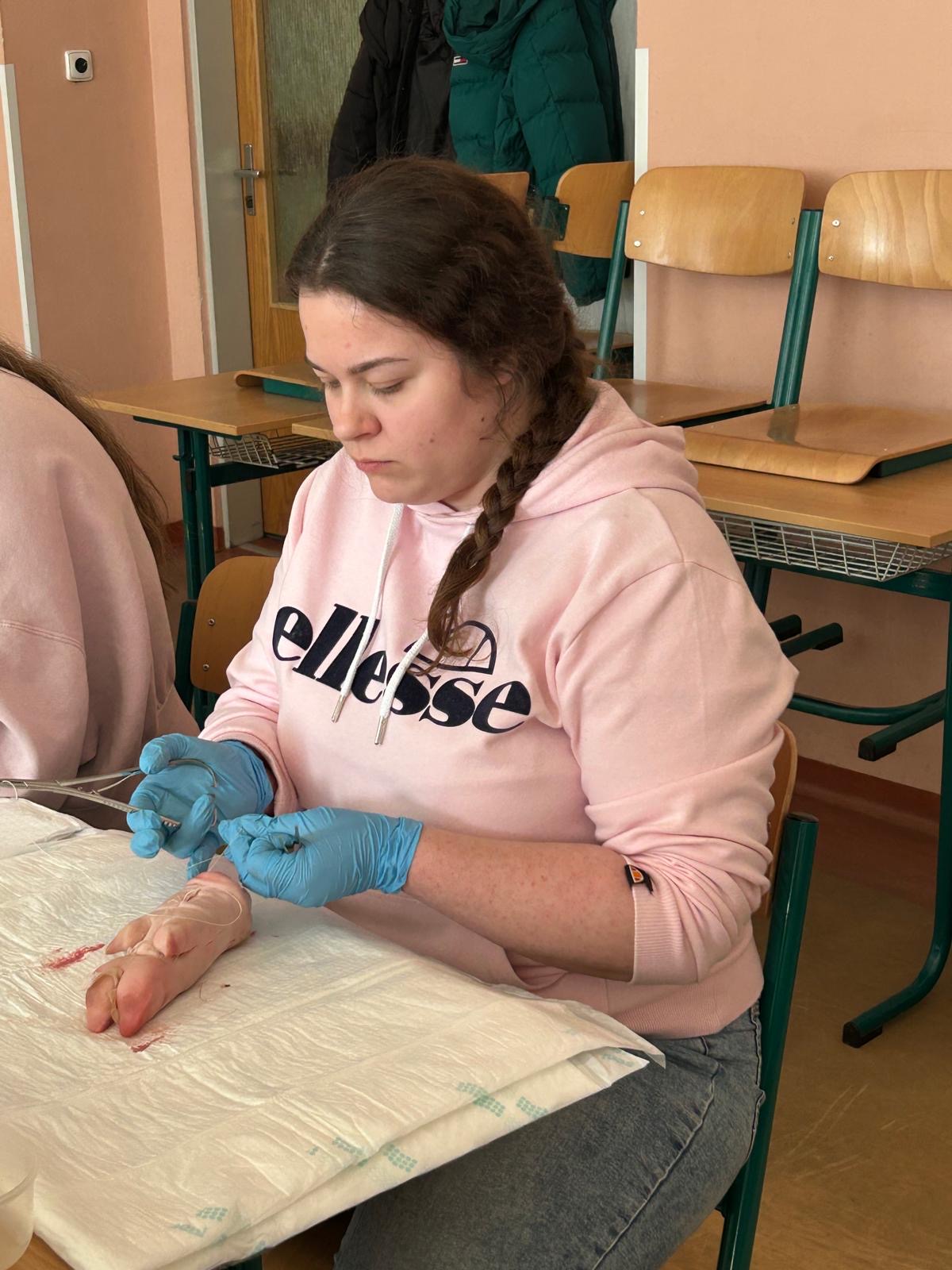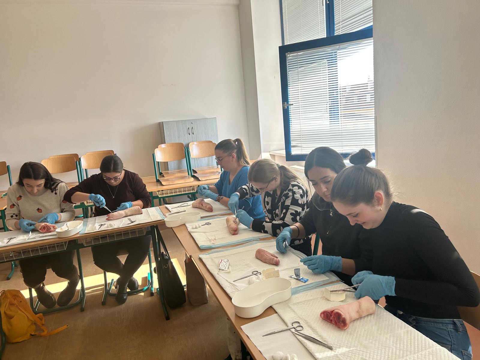 V nadväznosti na rozšírenie kompetencií pôrodných asistentiek o ošetrovanie jednoduchých pôrodných poranení sa 17. a 19.02.2025 konal kurz sutury pôrodného poranenia pre študentky 3. ročníka odboru pôrodná asistencia. Kurz pozostával z teoretickej a praktickej časti, v ktorej si študentky nacvičili šitie na modeloch pod odborným vedením.