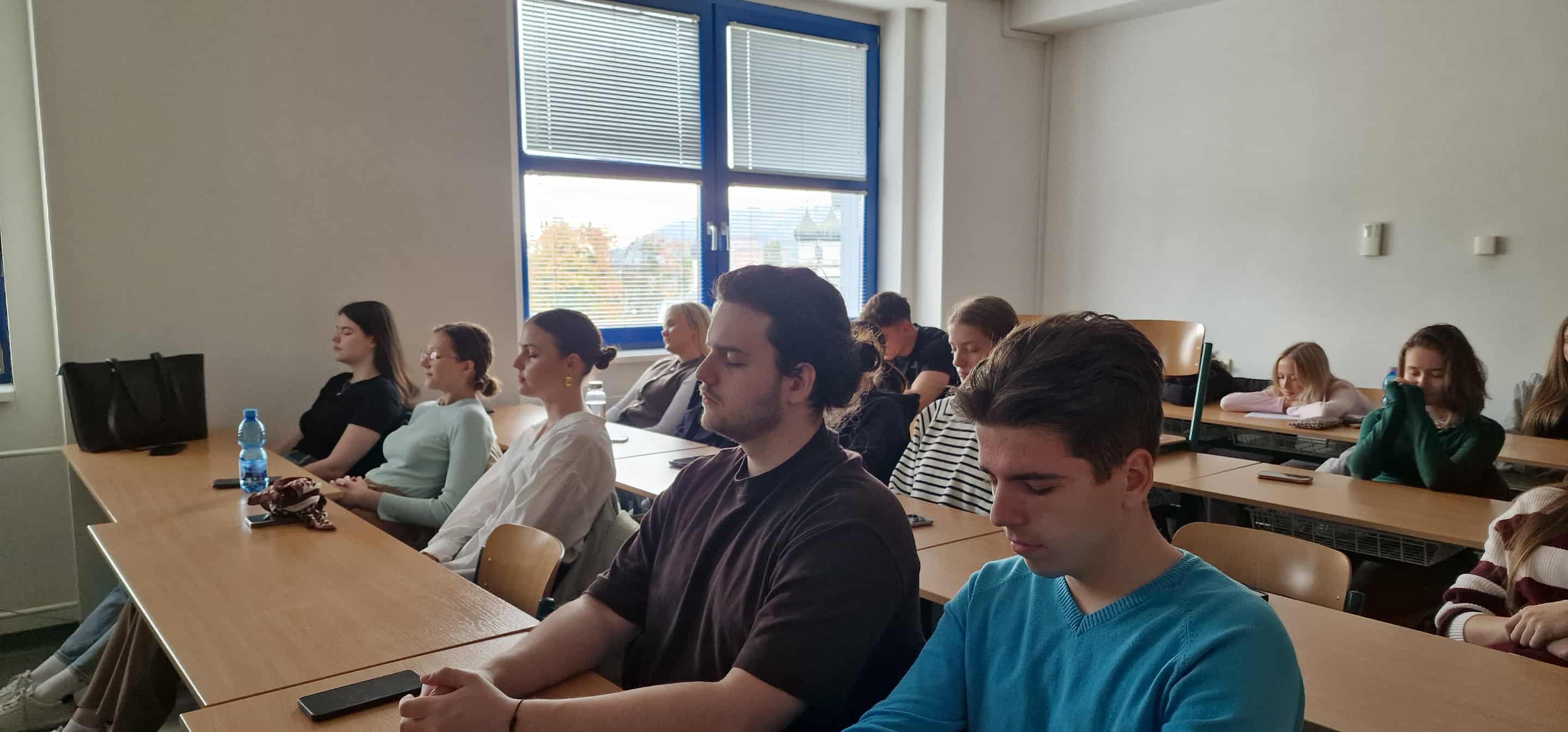 Študenti si po teoretickom úvode vyskúšali aj niekoľko relaxačných techník na zníženie stresu a zároveň nadobudli nové vedomosti ohľadom zvýšenia odolnosti voči stresu prostredníctvom aplikácie zdravotného životného štýlu.