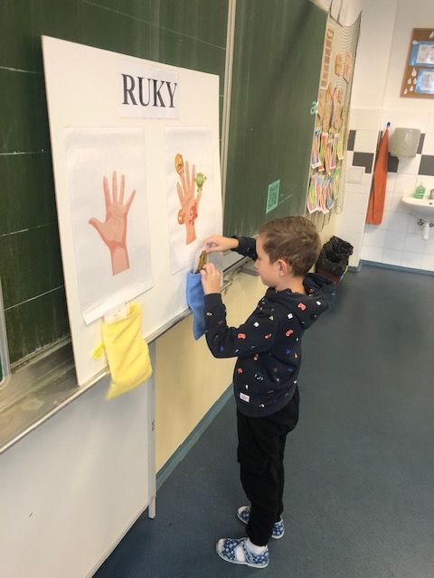 Žiakom bolo vysvetlené, že na rukách sa počas dňa hromadia neviditeľné baktérie a vírusy, ktoré sa môžu preniesť dotykom na jedlo alebo na iných ľudí. Pravidelné a dôkladné umývanie rúk preto patrí medzi najjednoduchšie a zároveň najúčinnejšie spôsoby prevencie ochorení. Súčasťou aktivity bola aj praktická ukážka správneho umývania rúk, pri ktorej sme použili UV lampu. Pod UV lampou mohli vidieť, ktoré miesta si neumyli dôkladne. Okrem toho sme využili aj ďalšie edukačné hry zamerané na hygienu rúk, rozpoznávanie situácií, kedy si ruky treba umyť, a na upevňovanie správnych hygienických návykov hravou formou. Vďaka aktivitám sa deti učili cez zážitok, čo posilnilo ich porozumenie aj zapamätanie.