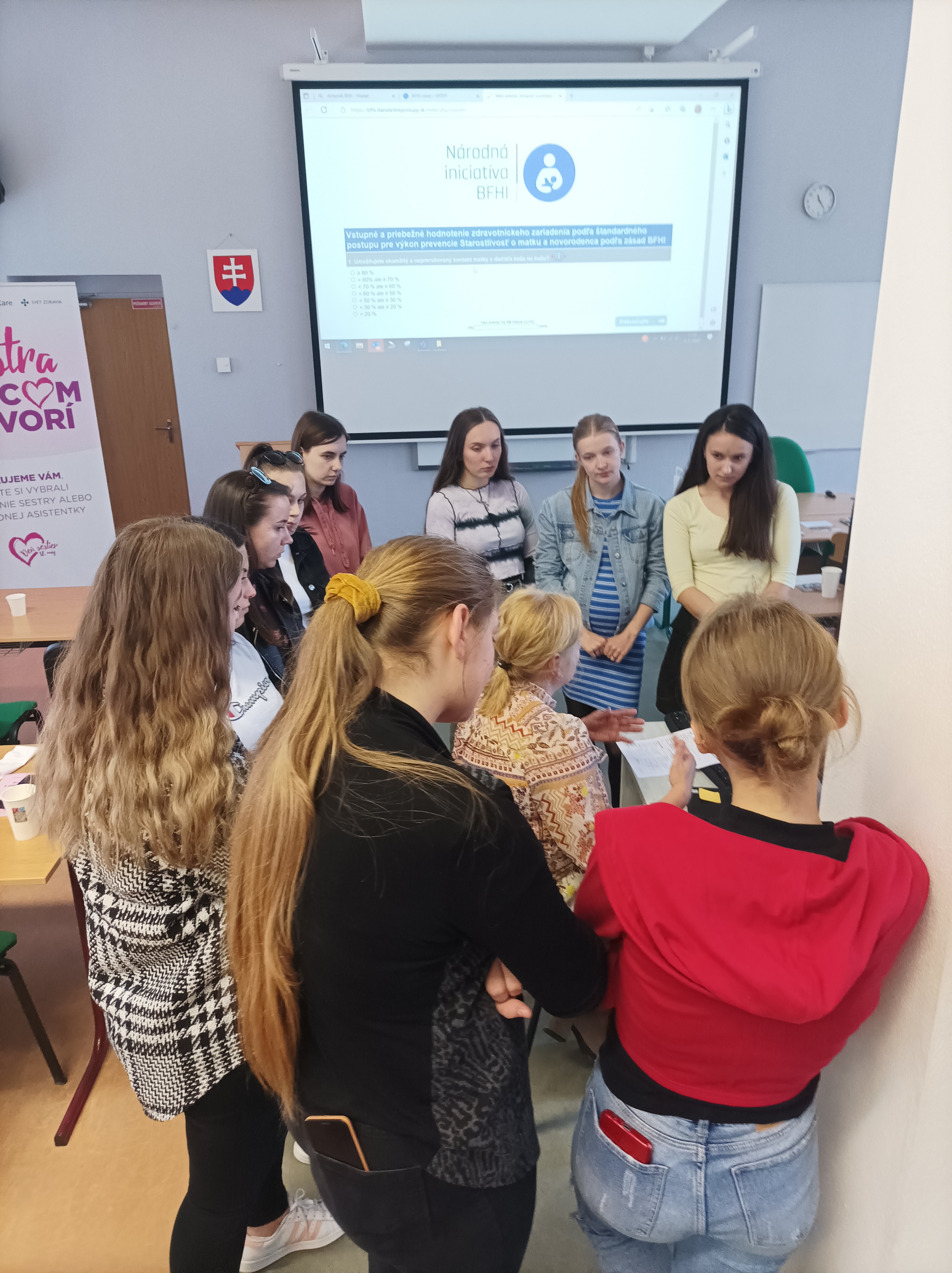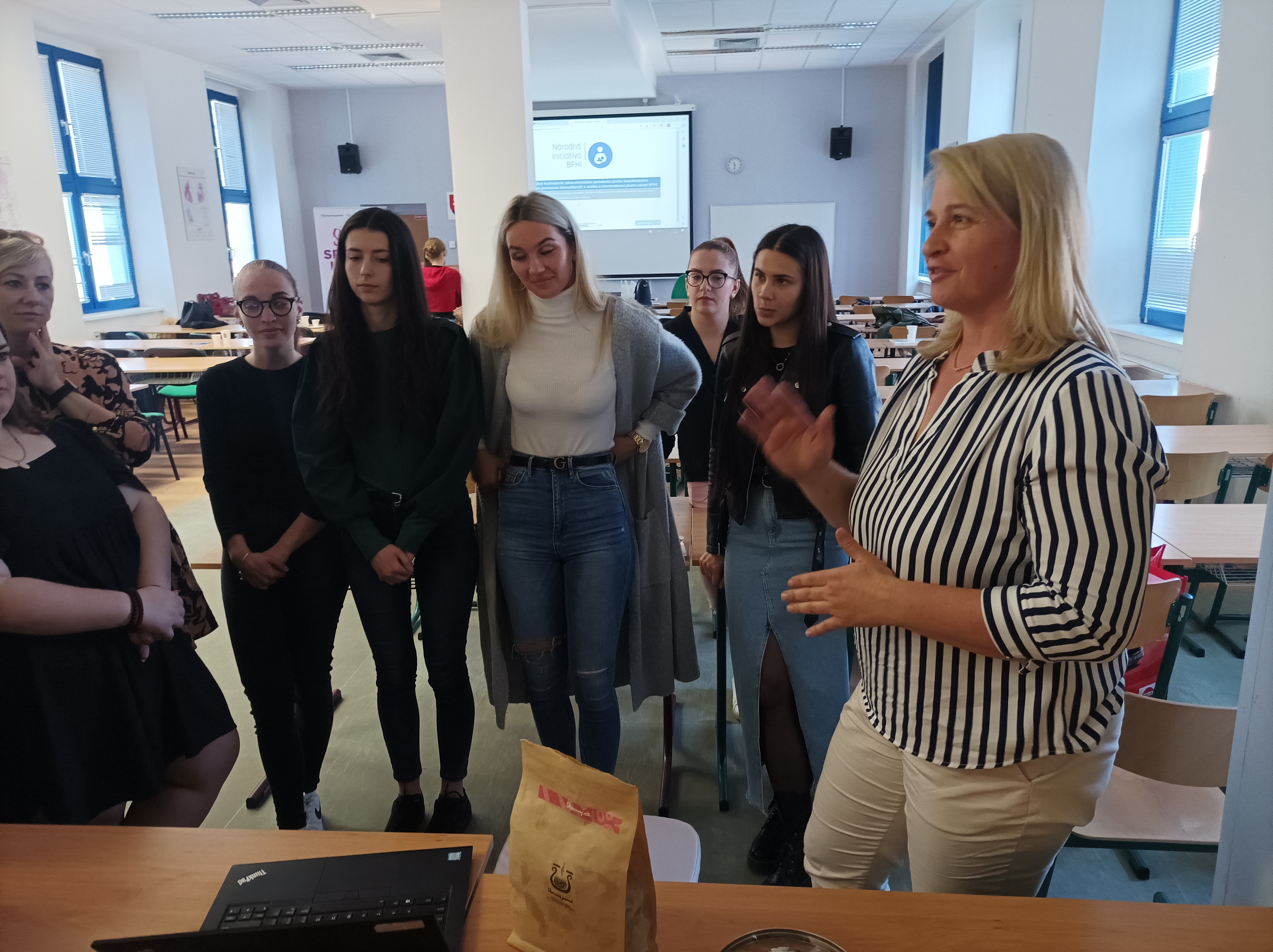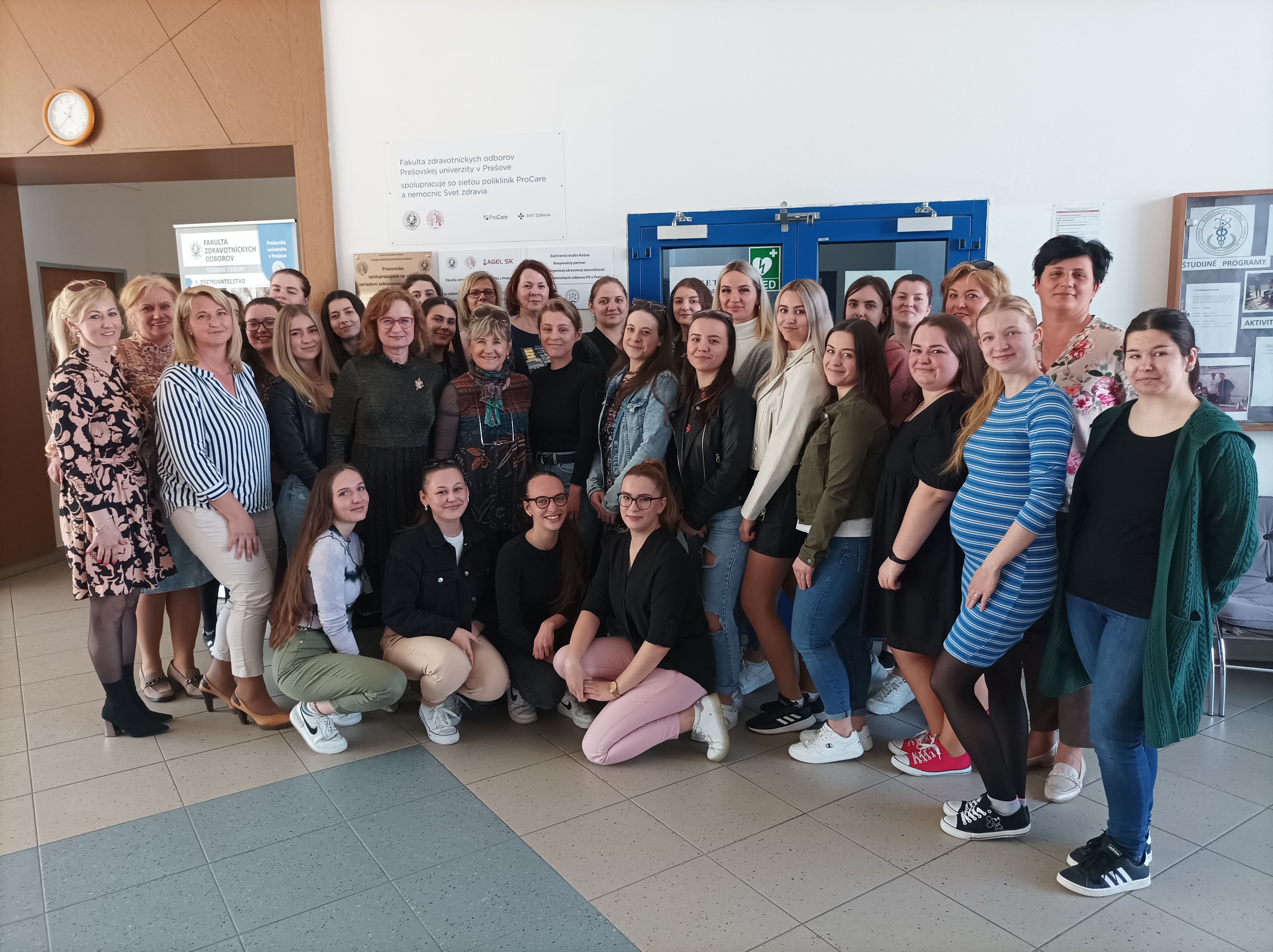 Dňa 5.5.2023 na medzinárodný deň pôrodných asisitentiek sa konal na Fakulte zdravotníckych odborov vzdelávací kurz v spolupráci so sieťou nemocníc Svet zdravia zameraný na BFHI (baby friendly hospital initiative). Vzdelávací kurz prebiehal pod záštitou dekanky FZO PU v Prešove doc. PhDr. Štefánie Andraščíkovej, PhD., a PhDr. Tatiany Kosťovej, PhD., MPH manažérky pre ošetrovateľskú starostlivosť Svet zdravia, a. s. Aktivita bola naplánovaná na jeden deň pre študentky druhého ročníka pôrodnej asisitencie v rámci predmetu laktačné poradenstvo. Súčasťou kurzu bolo rozvíjanie a upevňovanie vedomostí v oblasti BFHI, kedy sa v desiatich krokoch formulujú praktické postupy starostlivosti a podpory úspešného materstva s jeho kľúčovým faktorom dojčením. Záleží nám na kvalitných podmienkach pre matky a novorodencov, preto systematicky pracujeme na ich zlepšovaní už od základov, teda už pri vzdelávaní budúcich pôrodných asistentiek do praxe.