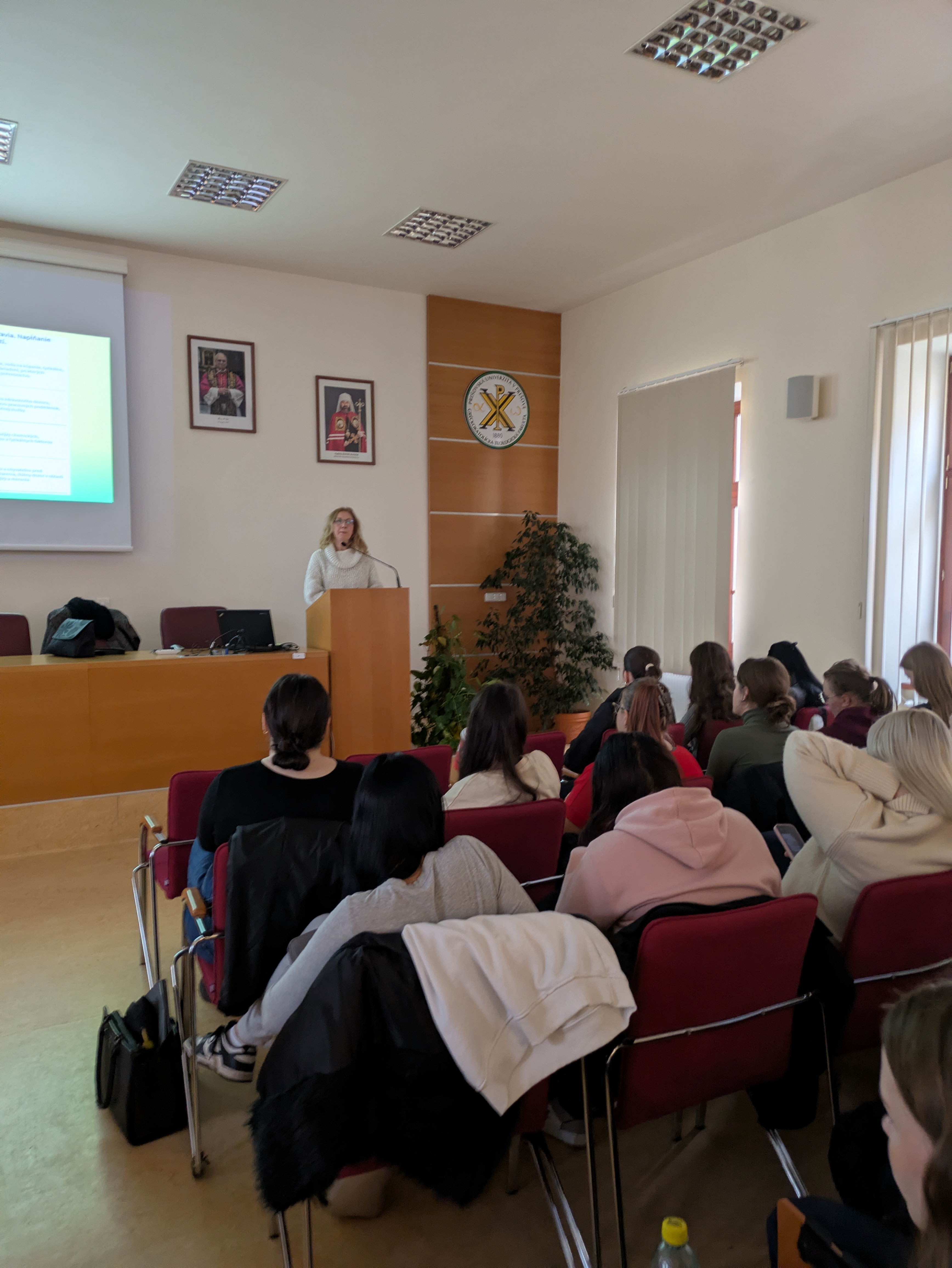 Prednášajúcou bola PhDr. Martina Bocsiková z Regionálneho úradu verejného zdravotníctva so sídlom v Spišskej Novej Vsi. Ošetrovateľstvo je úzko prepojené s prevenciou infekcií, verejným zdravím a ochranou populácie, preto je dôležité, aby študenti rozumeli práci epidemiológa a aktuálnym výzvam. Prednášajúca niekoľko krát zdôraznila význam hygieny rúk, ktorá je kľúčová pre bezpečnú klinickú prax, prevenciu infekcií  a podporu verejného zdravia. Interdisciplinárna spolupráca spája odborné pohľady viacerých profesií, čím zabezpečuje komplexnejšiu, bezpečnejšiu a efektívnejšiu starostlivosť o pacienta.