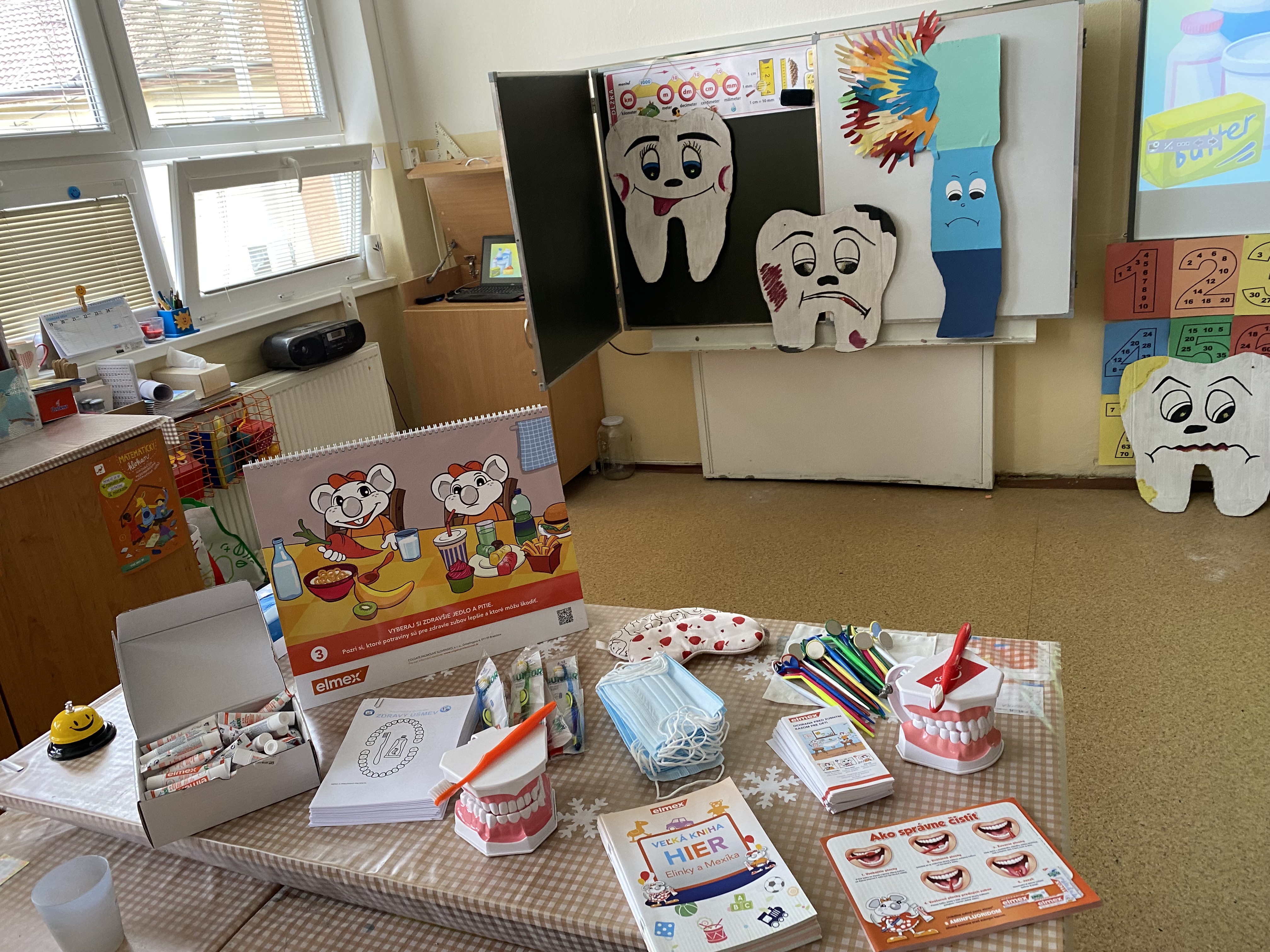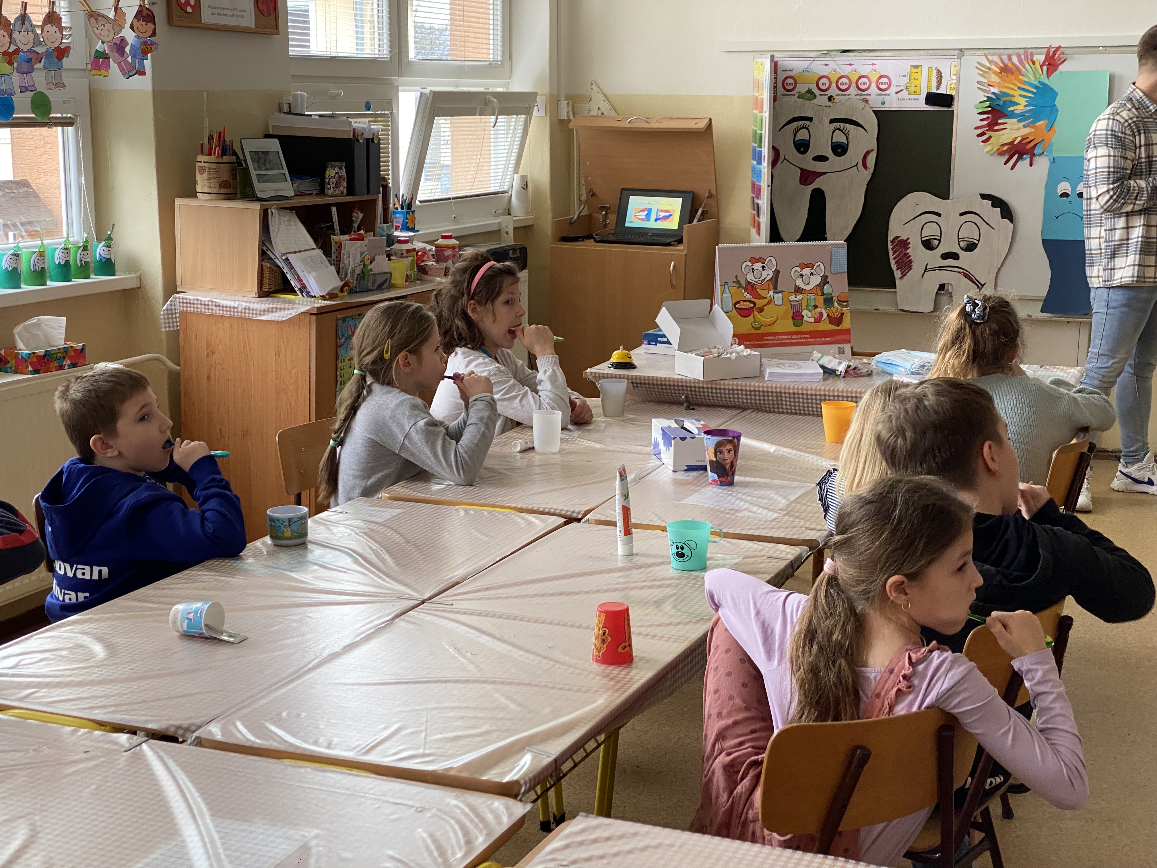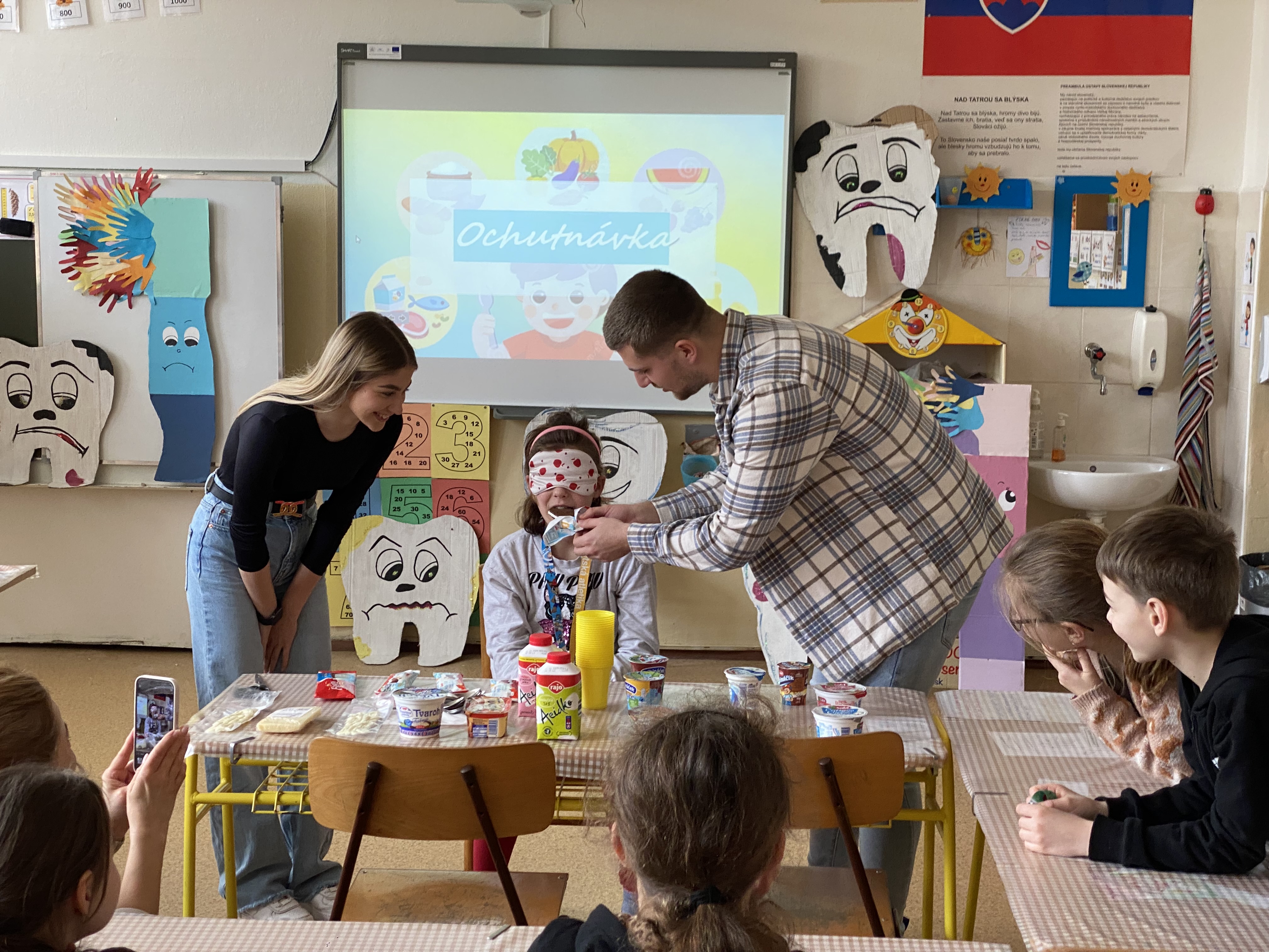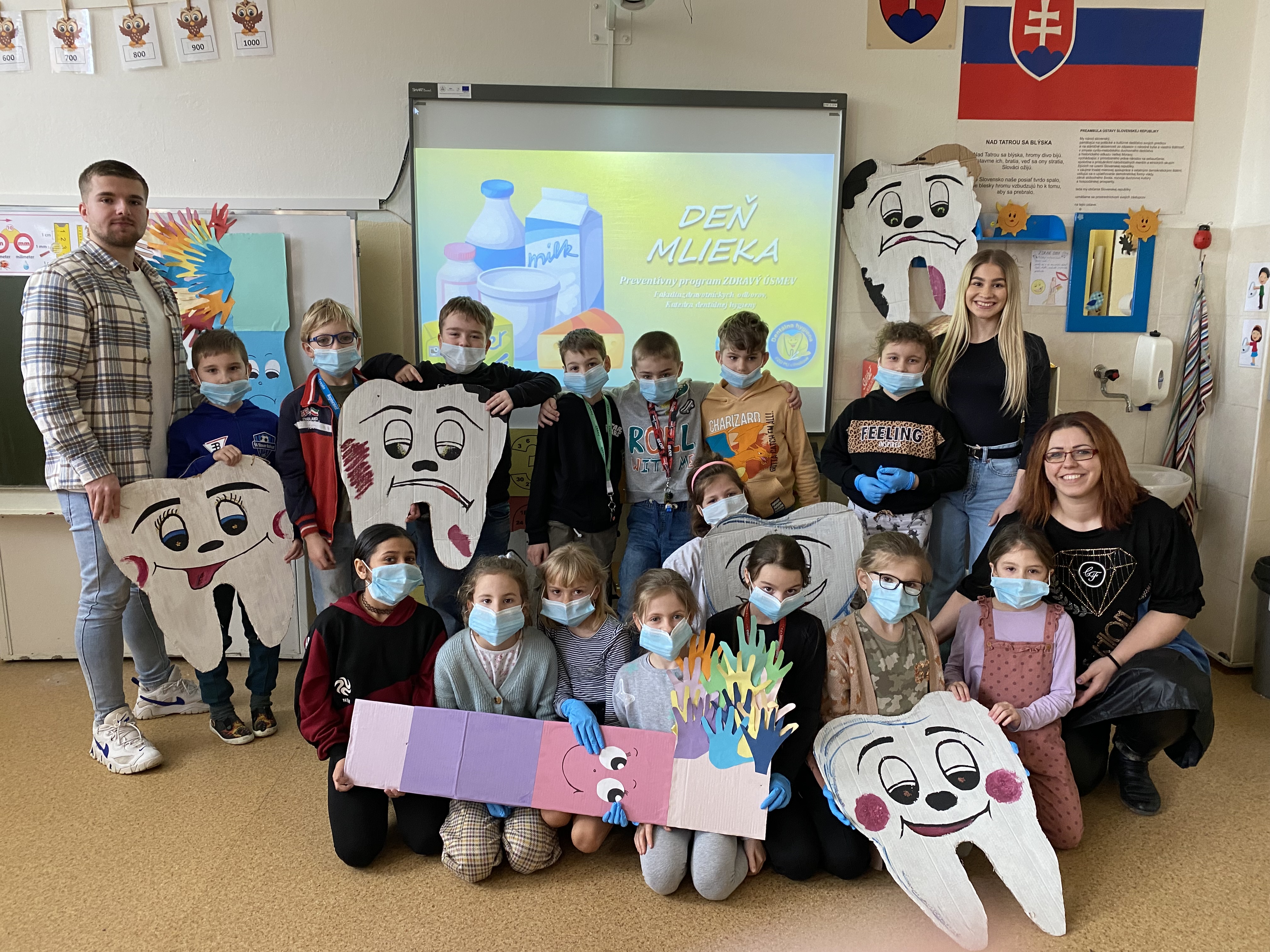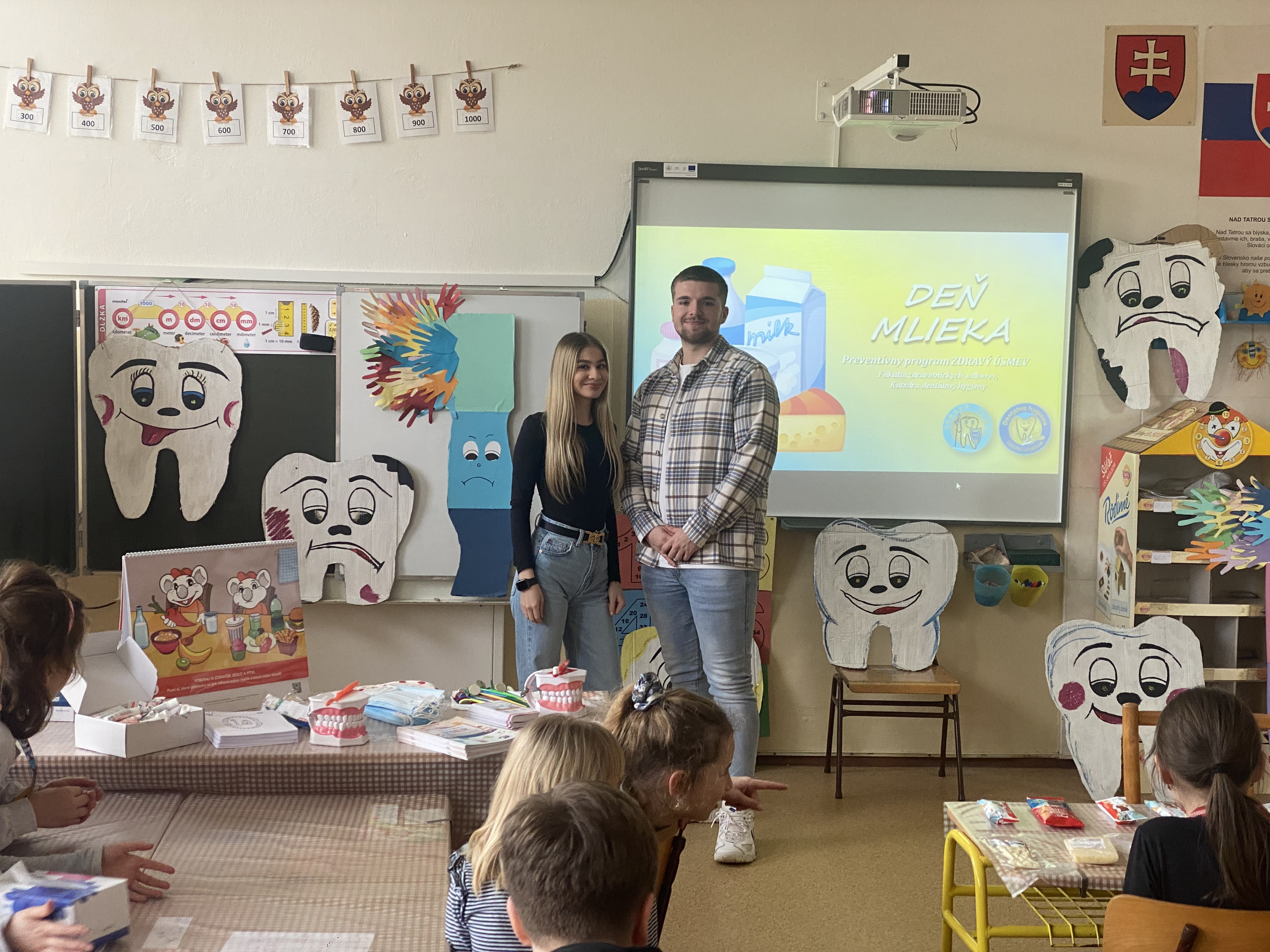 V rámci preventívneho programu ZDRAVÝ ÚSMEV dňa  22.02.2024 na základnej škole na Lesníckej ulici v Prešove študenti katedry dentálnej hygiena Dorota Pčolková a Alex Luterančík pod vedením  Mgr. Bc. Lucie Hudákovej, PhD zrealizovali edukačné stretnutie, ktoré bolo zorganizované v súvislosti s natáčaním propagačnej videonahrávky ku Dňu mlieka. Formou ochutnávky mliečnych potravín žiaci 3. ročníka tejto školy zisťovali, ktoré mliečne výrobky sú vhodné a ktoré menej vhodné pre zdravie ich chrupu. Po ochutnávke nasledovalo spoločné čistenie zubov, kde naši študenti precvičovali so žiakmi správnu techniku čistenia zubov ako aj správny postup ich čistenia. Pokračovaním bola hra na "zubárov", počas ktorej si žiaci pomocou zubolekárskych zrkadielok navzájom pozerali do úst, počítali zuby spolužiakovi a kontrolovali a hľadali zubný kaz. V závere stretnutia obdržali žiaci za svoju šikovnosť drobné darčeky od firmy Colgate Professional CZ/SK, z ktorých mali veľkú radosť. Celé stretnutie sa nieslo v príjemnom duchu a sme presvedčení, že si ho žiaci užili a nadobudli nové vedomosti z oblasti orálneho zdravia aj zásluhou študentov našej katedry.