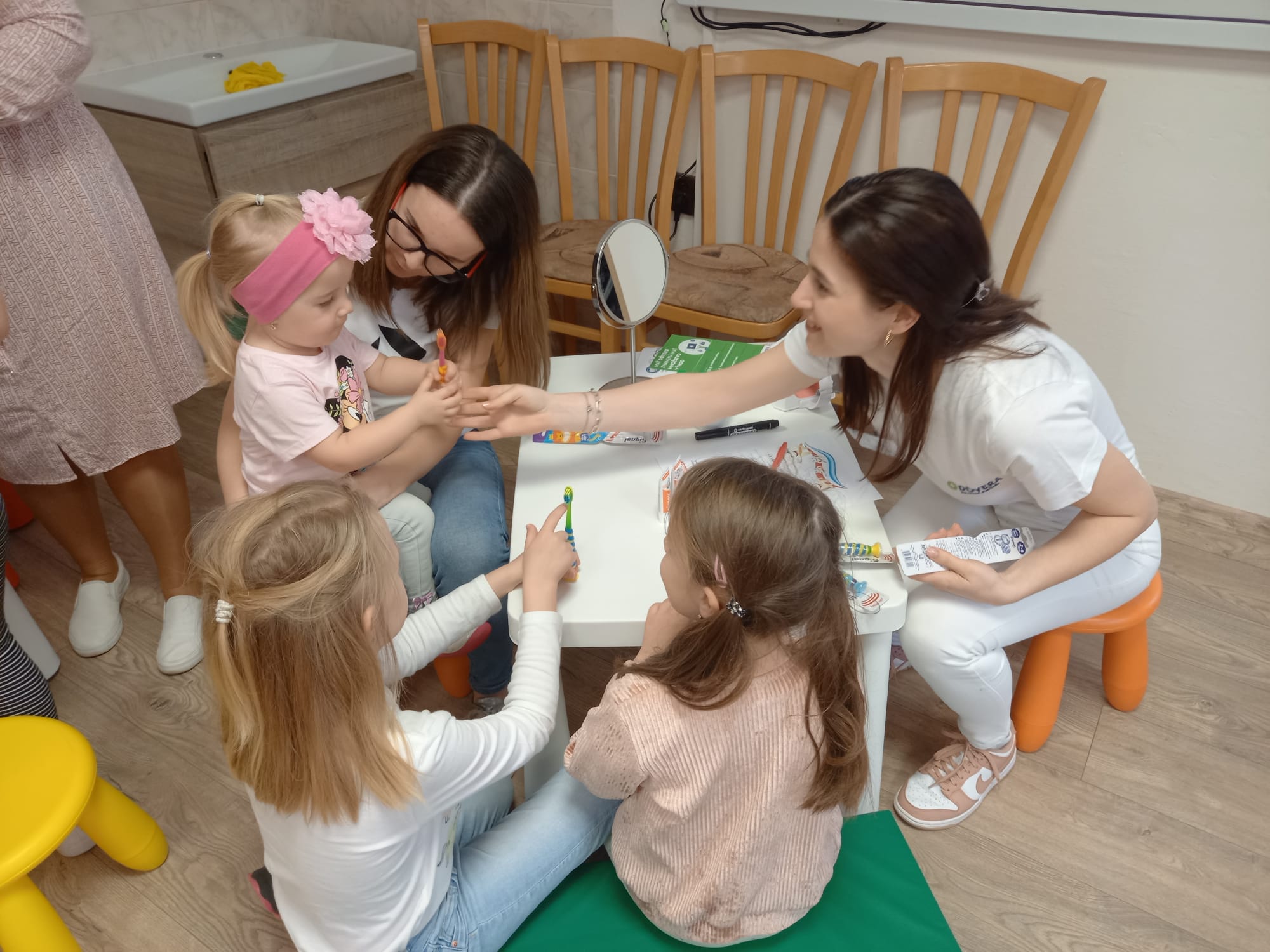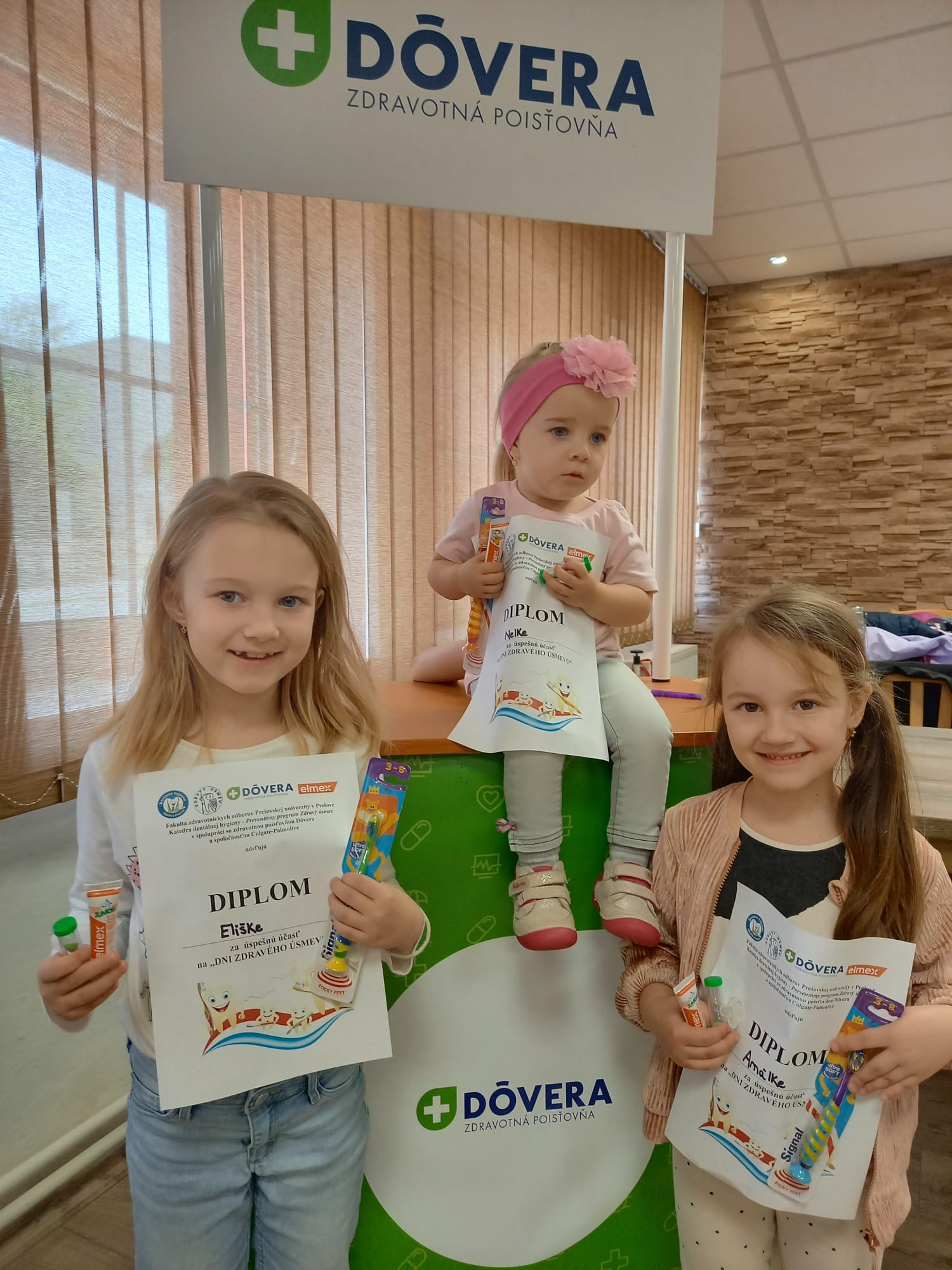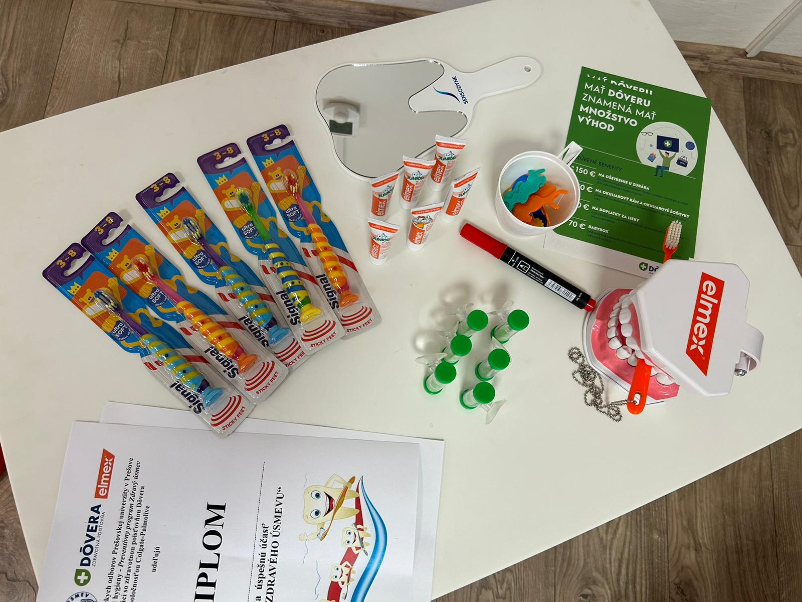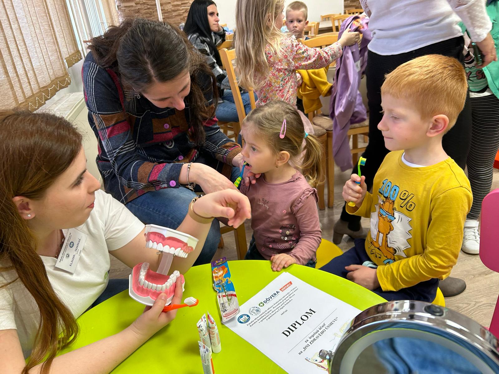 Preventívny program Zdravý úsmev v spolupráci so zdravotnou poisťovňou Dôvera v Malom Šariši pokračoval dňa 11.04.2024 v miestnej materskej škole. Na ďalšom edukačnom stretnutí sa aktívne zúčastnili študentky druhého ročníka z našej katedry. Zdravotnú poisťovňu Dôvera zastupovala Bc. Martina Lukáčová.V popoludňajších hodinách naše študentky pútavou prezentáciou deťom z materskej školy a ich rodičom vysvetlili ako má vyzerať vhodná zubná kefka, ako sa s ňou má narábať a ako často je potrebné si čistiť zúbky. Súčasťou prezentácie bola náučná rozprávka, prostredníctvom ktorej študentky vysvetlili deťom ako vzniká zubný kaz. Po prezentácii sa študentky Katedry dentálnej hygieny individuálne venovali každému rodičovi vysvetlením správnej techniky čistenia zubov, ktorú si spolu s dieťaťom následne aj nacvičili. Deti si zo stretnutia odniesli okrem vedomostí aj zubnú kefku, zubnú pastu, presýpacie hodiny na meranie dĺžky čistenia zubov a diplom o absolvovaní tejto edukácie.