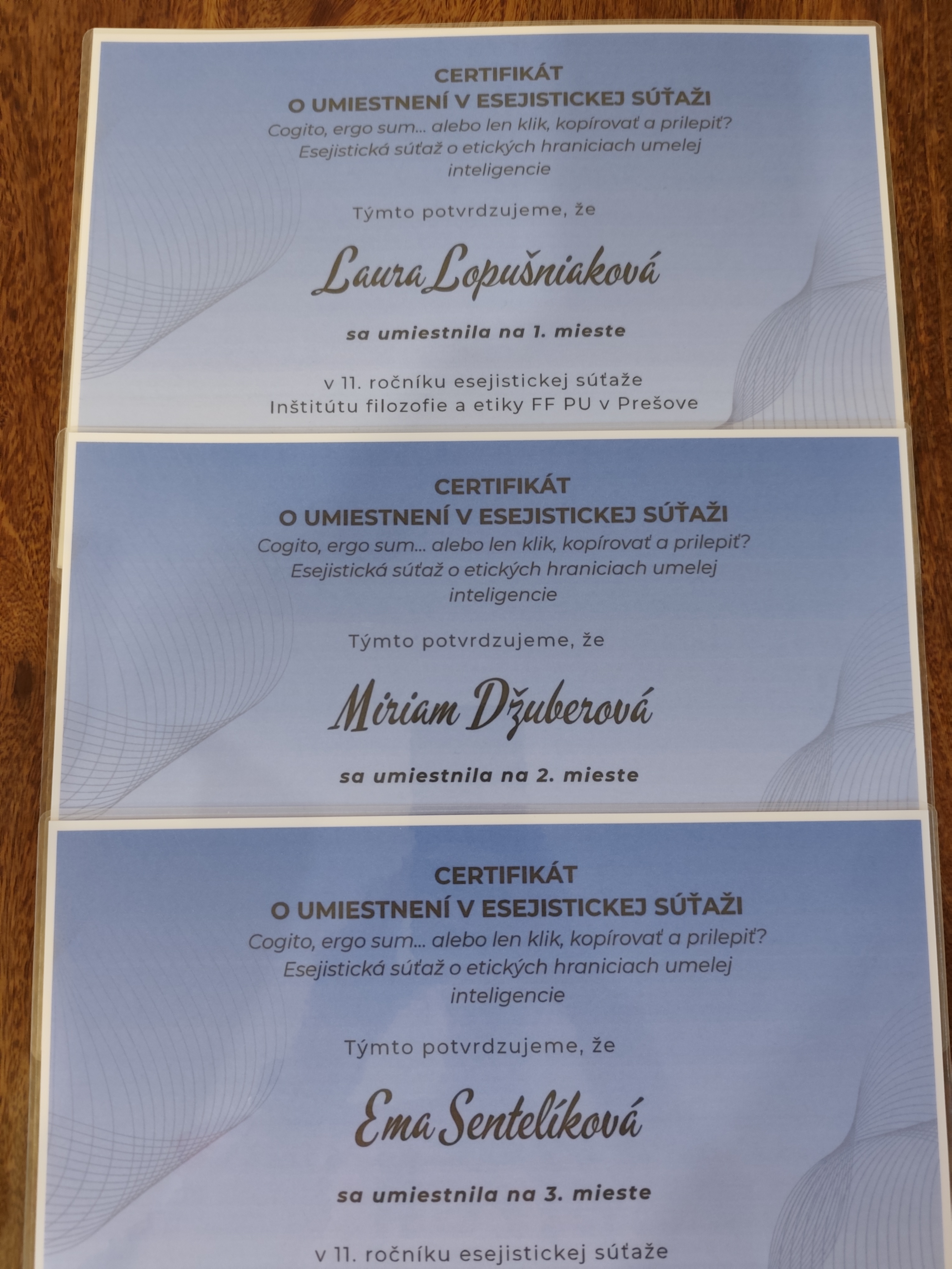 (2025)VÝSLEDKY jedenásteho ročníka esejistickej súťaže Inštitútu filozofie a etiky FF PU v Prešove - Cogito, ergo sum… alebo len klik, kopírovať a prilepiť?