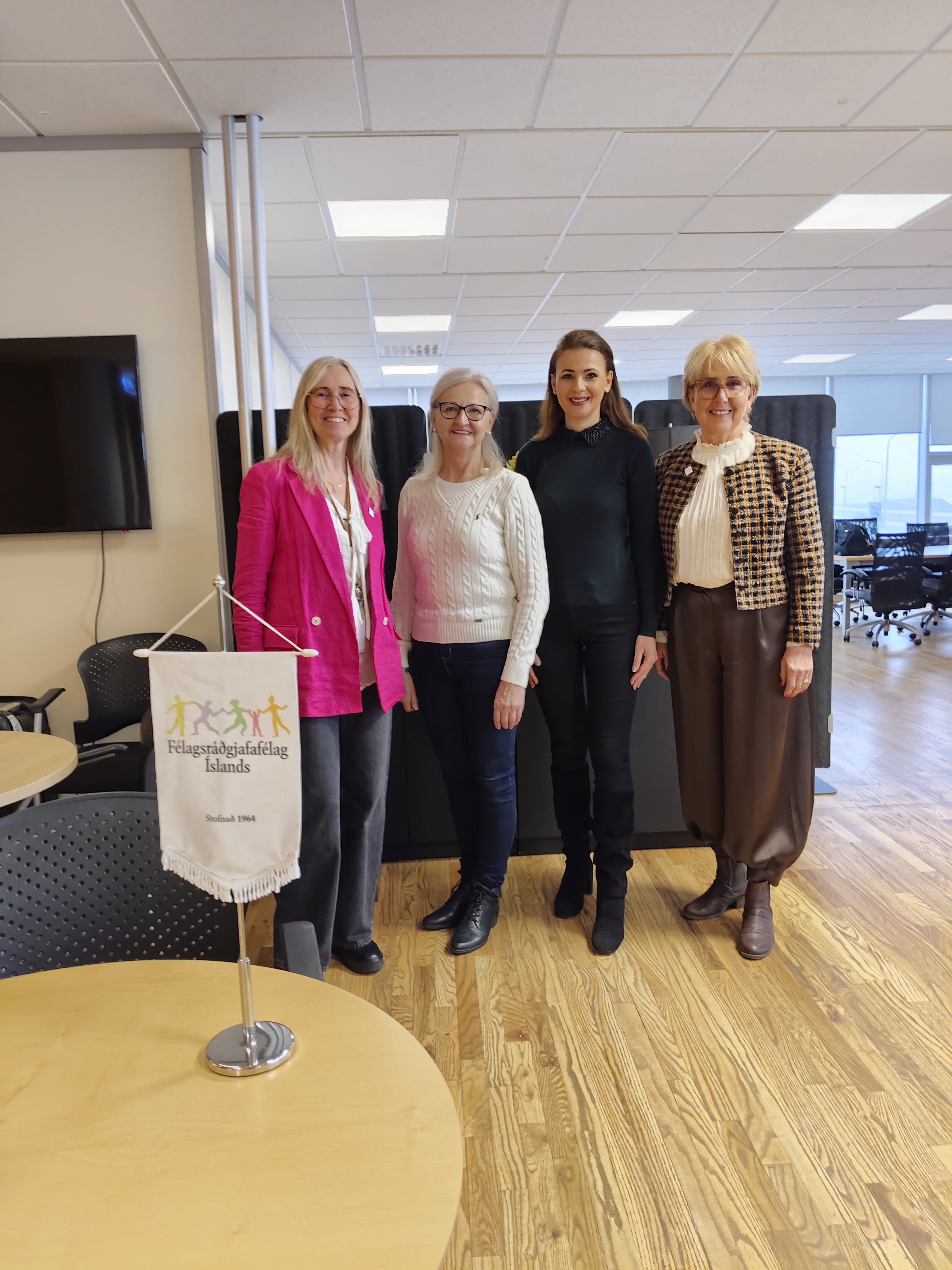 Navštívili sme Islandskú asociáciu sociálnych pracovníkov a pracovníčok (Icelandic Association of Social Workers), ktorá združuje vyše päťsto členov. Mali sme príležitosť v rámci stretnutia s výkonnou riaditeľkou Maríou Björk Ingvadóttir a predsedníčkou Steinunn Bergmann oboznámiť sa s agendou asociácie, ktorej začiatky siahajú do roku 1964. Ide o profesijné združenie sociálnych pracovníkov a pracovníčok na Islande, ktorého cieľom je vyvíjať iniciatívy v prospech záujmov sociálnych pracovníkov či podpory solidarity a rovnosti, čo sa v praktickej rovine premieta do posilňovania identity sociálnej práce a boja proti nespravodlivosti a diskriminácii. Členovia a členky asociácie majú prístup k rôznym službám, každoročne vydávanému Časopisu pre sociálnych pracovníkov a informáciám o konaných podujatiach v oblasti sociálnej práce. Asociácia každoročne organizuje kongres v spolupráci s Fakultou sociálnej práce Islandskej univerzity, aby tak spoločne vytvorili priestor pre zdieľanie skúseností a platformu diseminácie vedecko-výskumných inovácií v prospech rozvoja sociálnej práce.