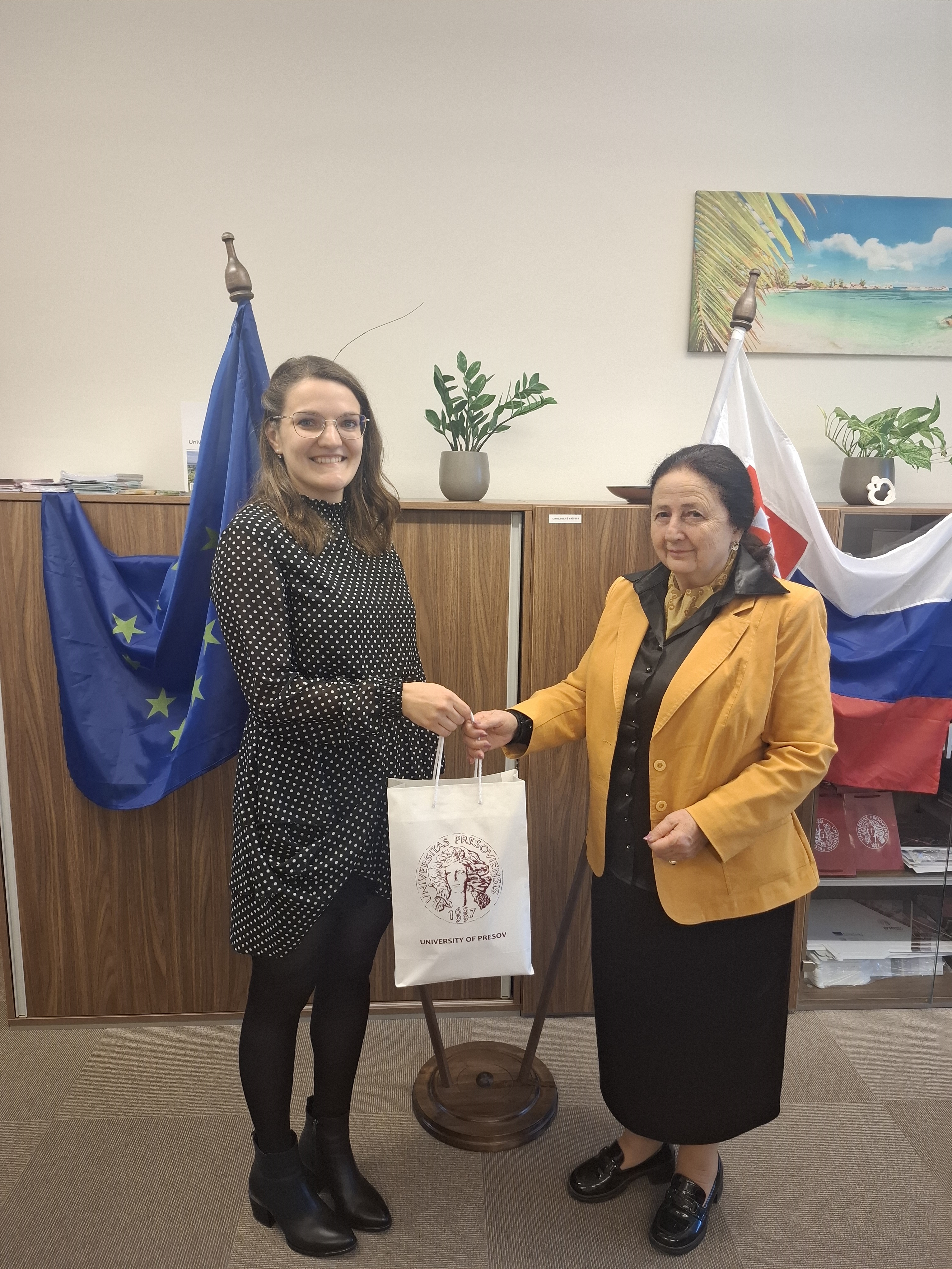 Pani prodekanka vyzdvihla medzinárodnú spoluprácu a internacionalizáciu, ktorou prispieva aj Inštitút rusistiky FF PU. Takisto prejavila záujem o ďalšie rozvíjanie medzinárodnej spolupráce s Jerevanskou štátnou univerzitou v Idževane, ako na fakultnej úrovni s Fakultou humanitných vied Jerevanskej štátnej univerzity, tak aj na inštitútovej úrovni s Katedrou cudzích jazykov. Pani prodekanka zaželala pani prof. Minasyan príjemný pobyt na pôde Filozofickej fakulty PU v Prešove.