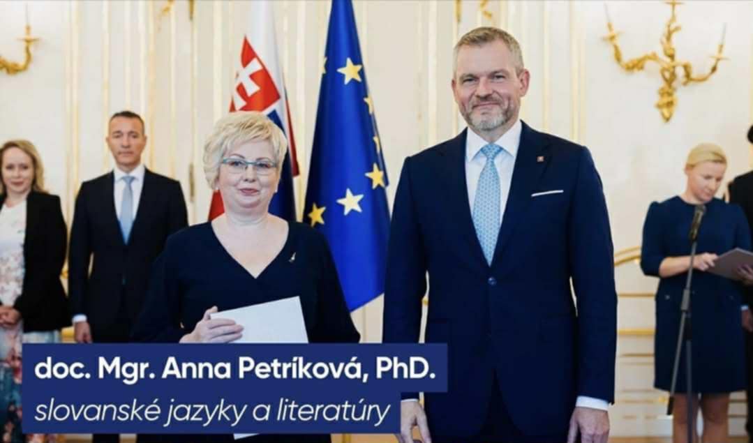 Prezident SR Peter Pellegrini dnes vymenoval 31 nových vysokoškolských profesorov. Dňa 6. 11. 2025 prijala z rúk prezidenta SR Petra Pellegriniho menovací dekrét za vysokoškolskú profesorku v odbore Slovanské jazyky a literatúry aj naša kolegyňa pani doc. Mgr. Anna PETRÍKOVÁ, PhD.