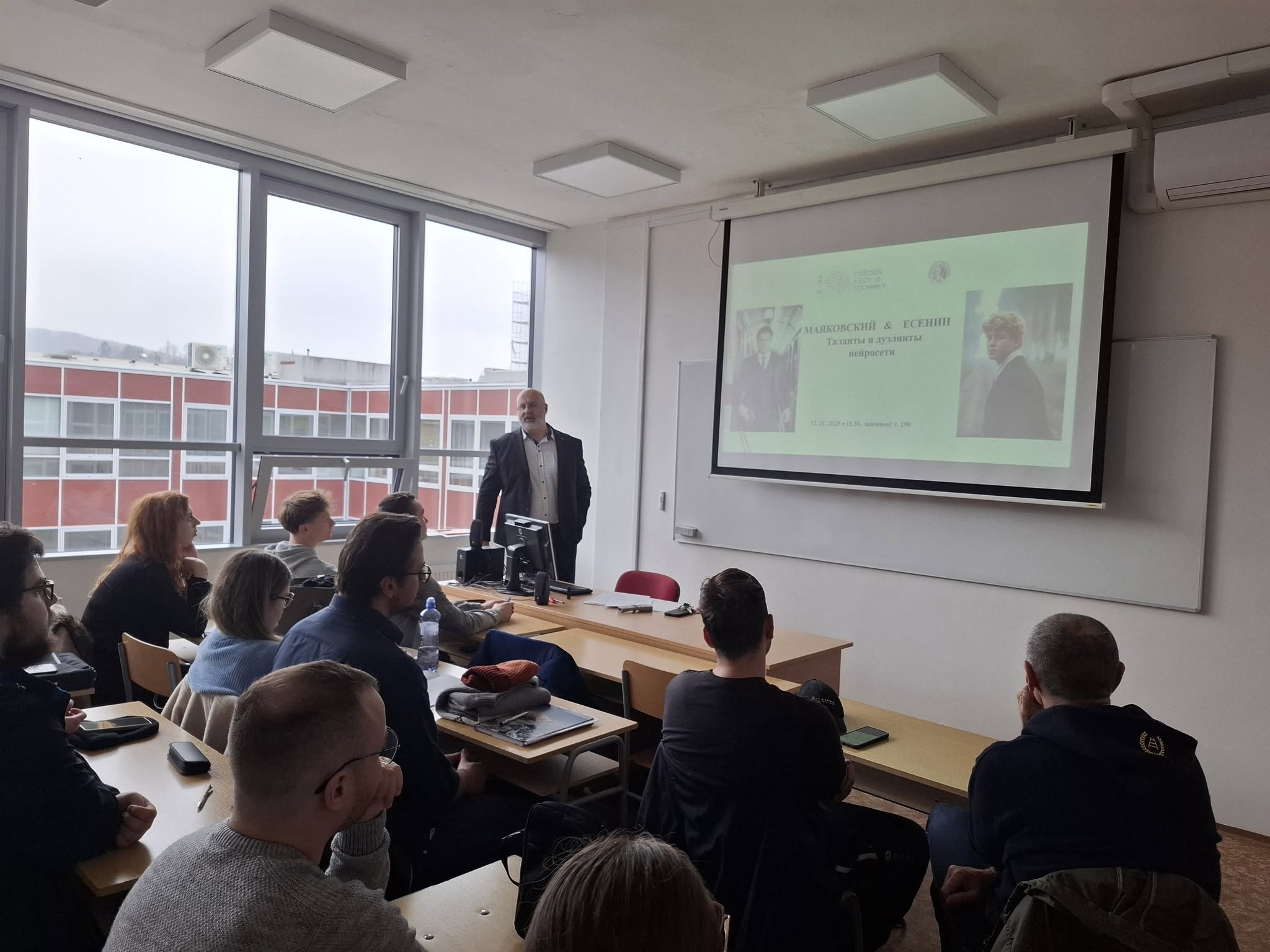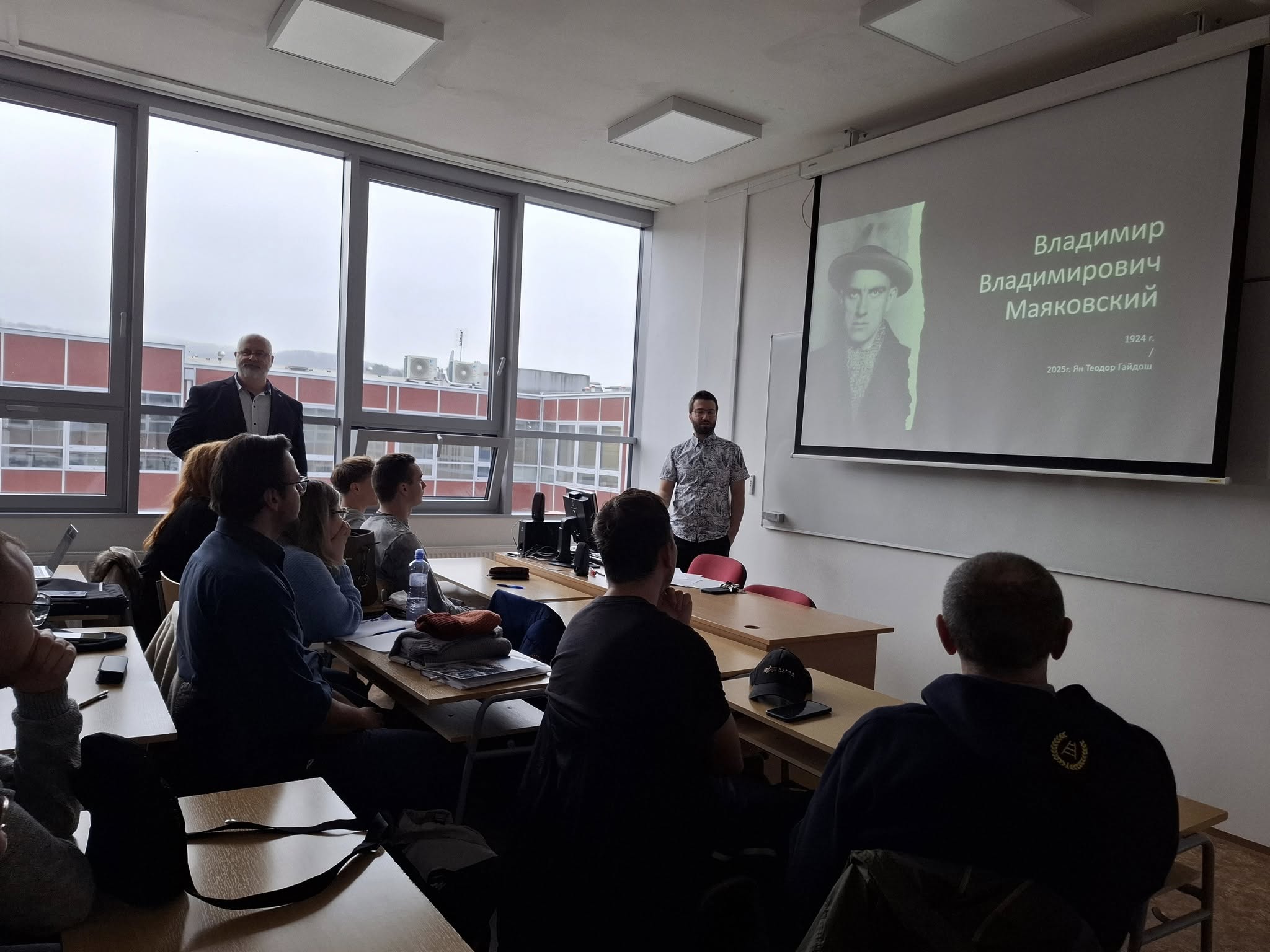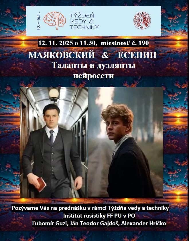 Na Slovensku si v dňoch od 10. – 16. novembra 2025 pripomíname Týždeň vedy a techniky na Slovensku. Tento ročník sa nesie pod názvom Život s umelou inteligenciou. Pri tejto príležitosti sa dnes na pôde Inštitútu rusistiky FF PU uskutočnili prednášky s názvom Vladimir Majakovskij a Sergej Jesenin – talenty a duelanti vo veku AI.