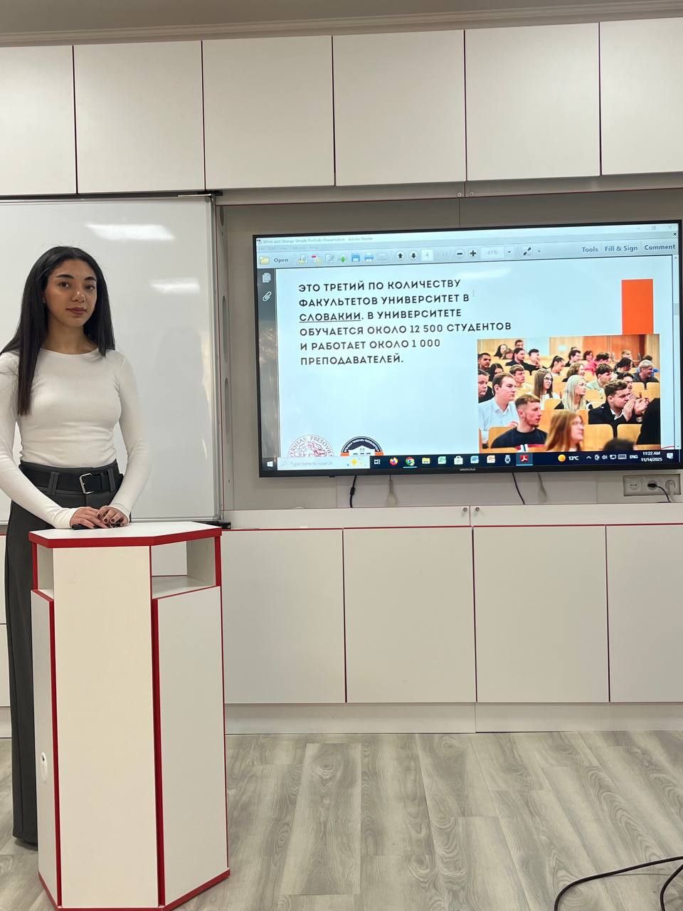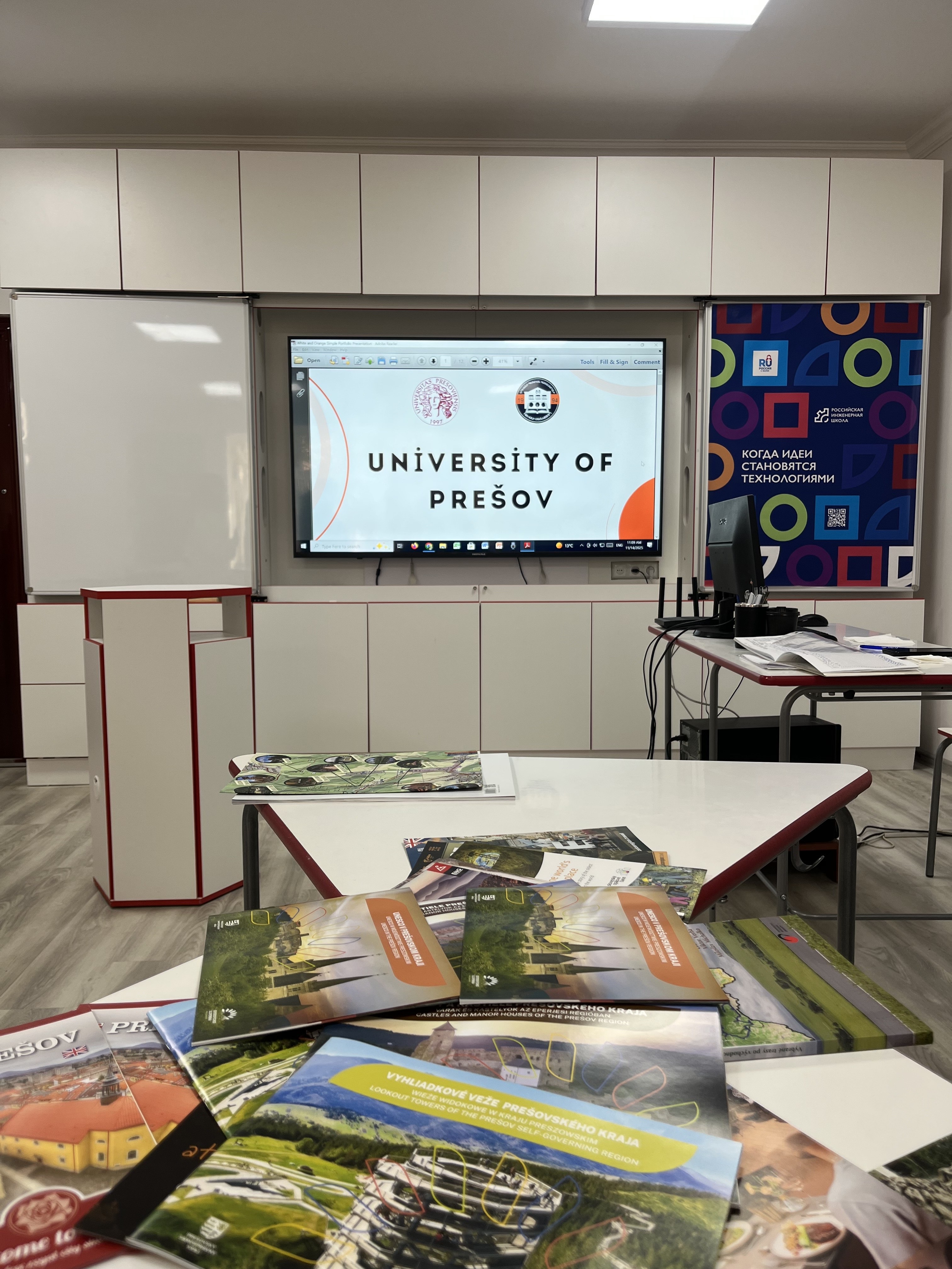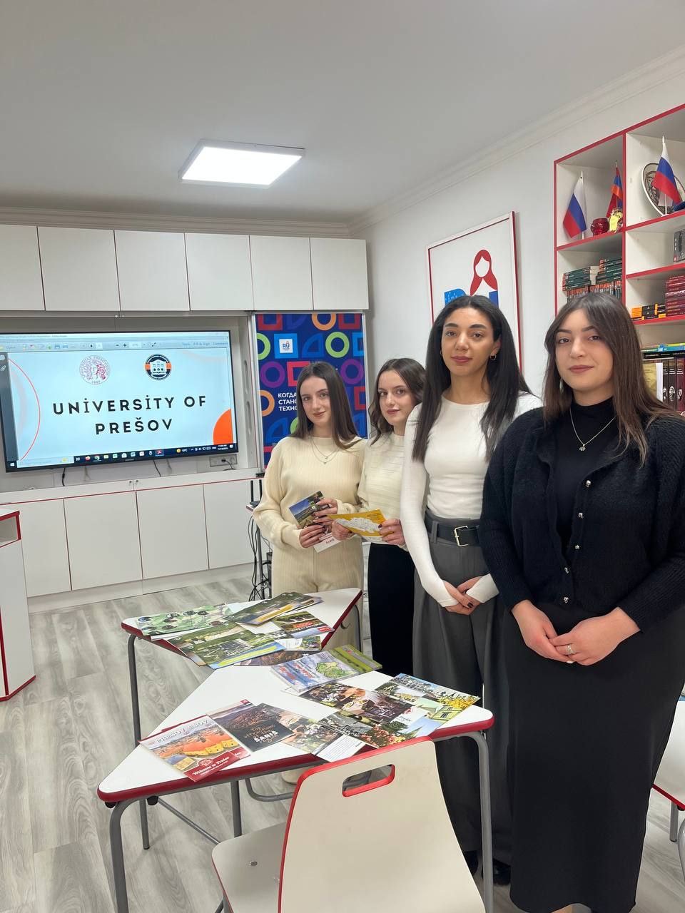 Pri tejto príležitosti študenti pripravili prezentácie o Prešovskej univerzite a Prešove pod vedením pani prof. Svetlany Minasyan, PhD. Študenti mali možnosť preštudovať si materiály o PU, Prešove a Slovensku, ktoré im Inštitút rusistiky osobne odovzdal počas zahraničnej mobility pani prof. Svetlany Minasyan, PhD.