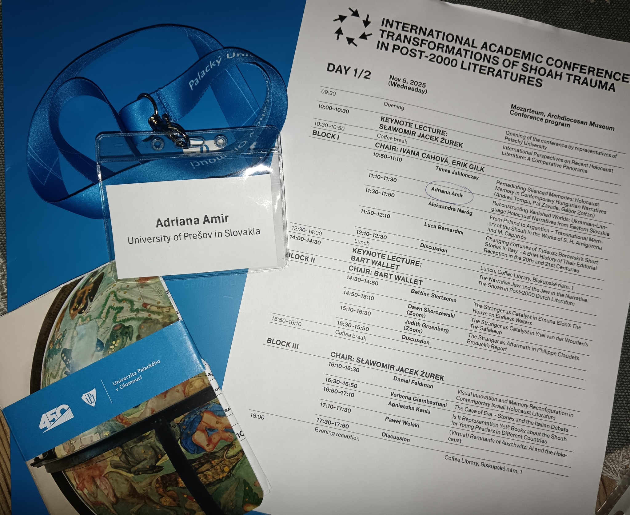 V dňoch 5. – 7. novembra 2025 sa na pôde Univerzity Palackého v Olomouci konala medzinárodná vedecká konferencia INTERNATIONAL ACADEMIC CONFERENCE: TRANSFORMATIONS OF SHOAH TRAUMA IN POST-2000 LITERATURES, venovaná reflexii holokaustu v literatúre po roku 2000.