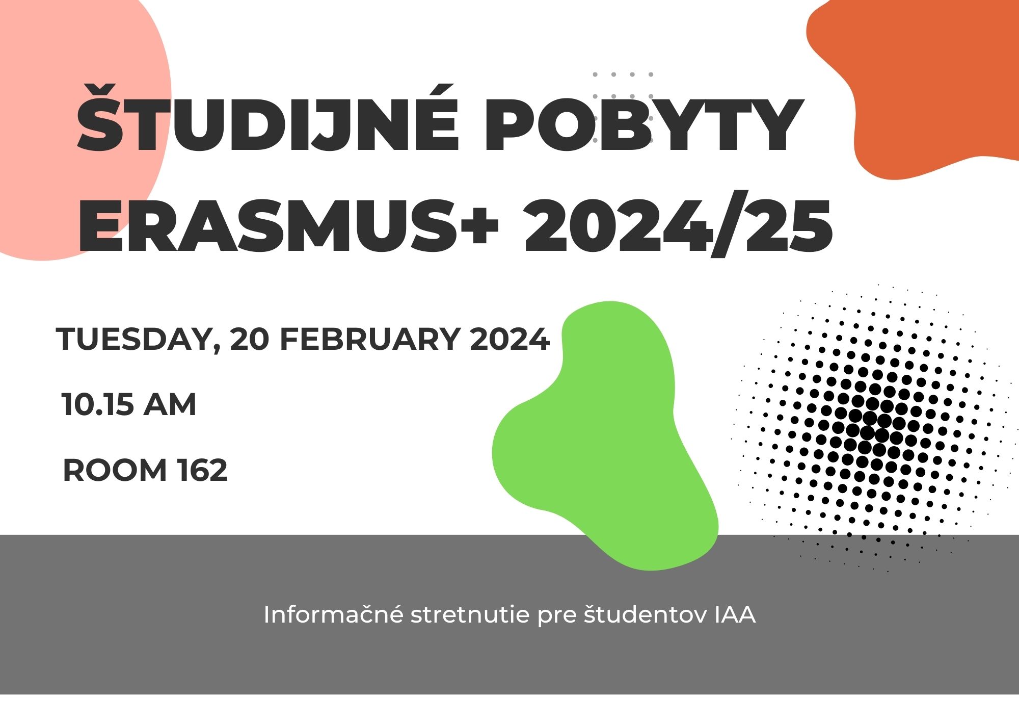 ERASMUS+ Študijné pobyty 2024/2025 - info stretnutie Predpokladané trvanie: 15 min. Aktualizoval(a): Zuzana Nováková, 15.02.2024