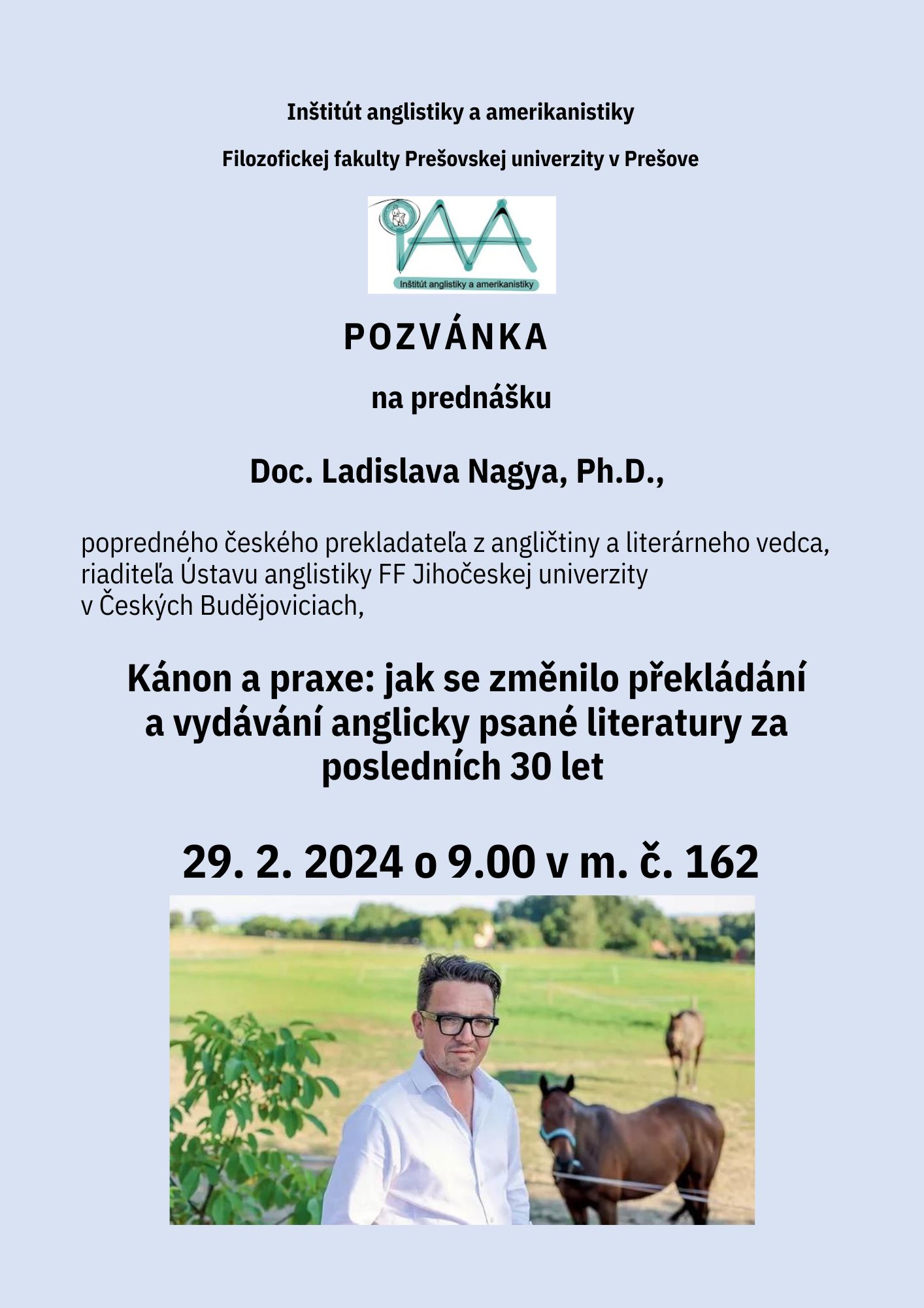 Pozvánka na prednášku Prednáška zameraná na zmeny a tranformáciu prekladu Galéria Galéria Aktualizoval(a): Veronika Bežilová, 19.02.2024