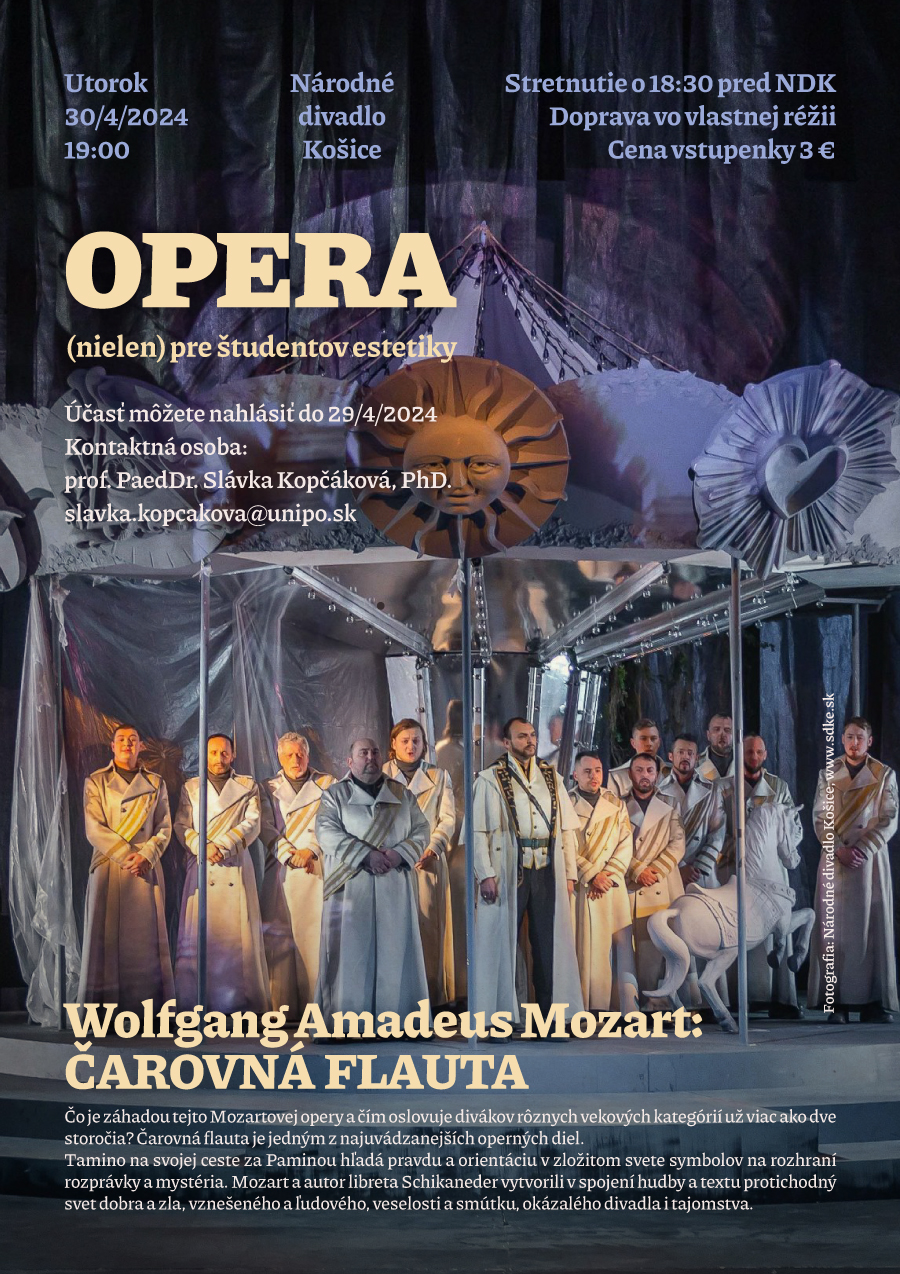 Opera (nielen) pre študentov estetiky: Čarovná flauta Galéria Galéria Aktualizoval(a): Adrián Kvokačka, 03.04.2024