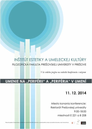Dňa 11. 12. 2014 sa uskutočnila vedecká konferencia Umenie na „periférii“ a „periféria“ v umení zameraná na skúmanie a preverenie stále aktuálneho problému periférie v umení a periférie umenia, či umenia na periférii. Konferencia bola rozdelená do dvoch konferenčných blokov, ktoré rešpektovali tematické vymedzenie príspevkov. Zameraním konferencie bolo vytvoriť platformu pre odbornú diskusiu o kategórii „periférneho“ v oblasti kultúry, umenia a ich historického a geografického kontextu. Dôraz sa kládol na komplementárnosť vzťahu „centra“ a „periférie“ a na dynamicky meniaci sa obsah pojmu „periférne“ v priestore kultúry a umenia.