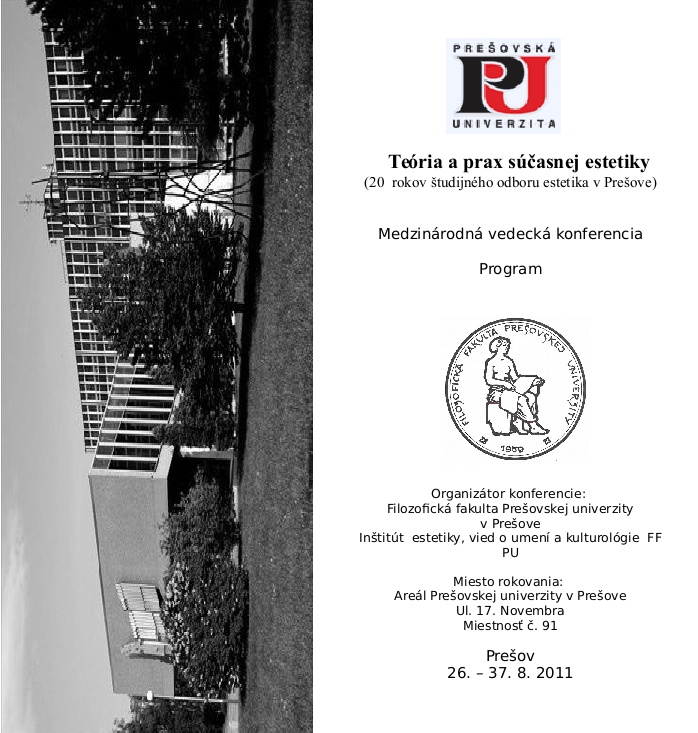 Medzinárodná vedecká konferencia Teória a prax súčasnej estetiky, ktorá sa konala v dňoch 26. – 27. augusta 2011, si kládla za cieľ vytvoriť priestor pre diskusiu o zmysle estetiky v teórii i praxi, o potrebe estetiky pre ostatné disciplíny (vedy o umení, kulturológiu, pedagogiku, psychológiu, etiku, filozofiu a i.) a pre všetky oblasti spoločenského života vrátane pedagogických a výchovných inštitúcií a médií. Ďalším rozmerom konferencie bolo pripomenutie si dvadsiatich rokov študijného odboru estetika v Prešove. Konferencia sa tak stala rovnako aj priestorom a príležitosťou na stretnutie bývalých pedagógov pracoviska a absolventov odboru estetika v Prešove so súčasným personálnym zložením jubilujúceho pracoviska.