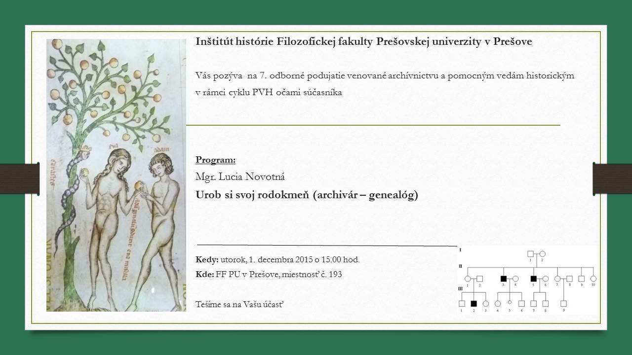• 27. novembra 2024 - budova VŠA, miestnosť č. 182