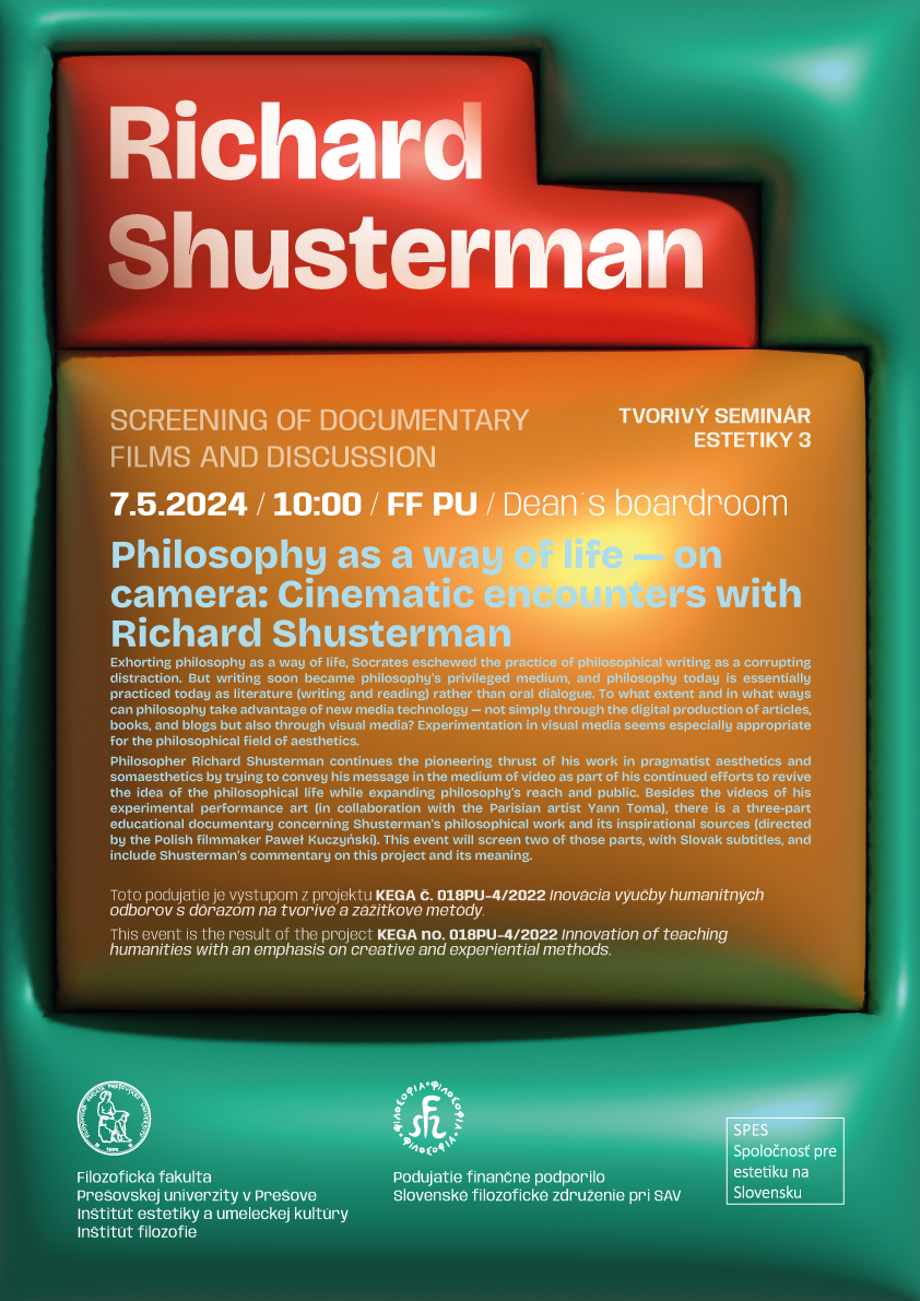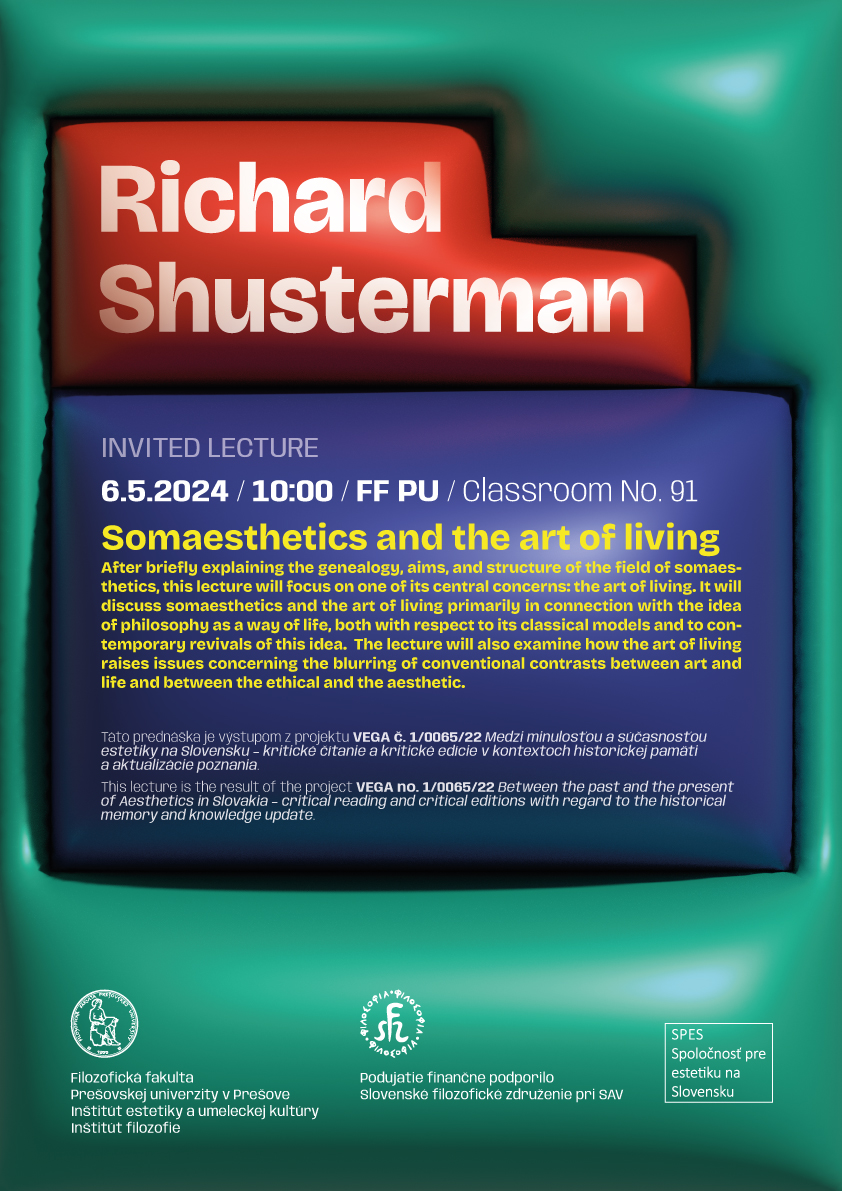 Richard Shusterman na FF PU Návšteva Richarda Shustermana v médiách: https://www.ahoj.tv/clanky/clanok/11543/presovsku-univerzitu-navstivil-richard-shusterman/ https://www.teraz.sk/regiony/presovsku-univerzitu-navstivi-americ/792422-clanok.html https://bleskovky.zoznam.sk/cl/1005001/2750799/Presovsku-univerzitu-navstivi-americky-filozof-richard-shusterman Galéria Galéria Aktualizoval(a): Lukáš Arthur Švihura, 13.05.2024