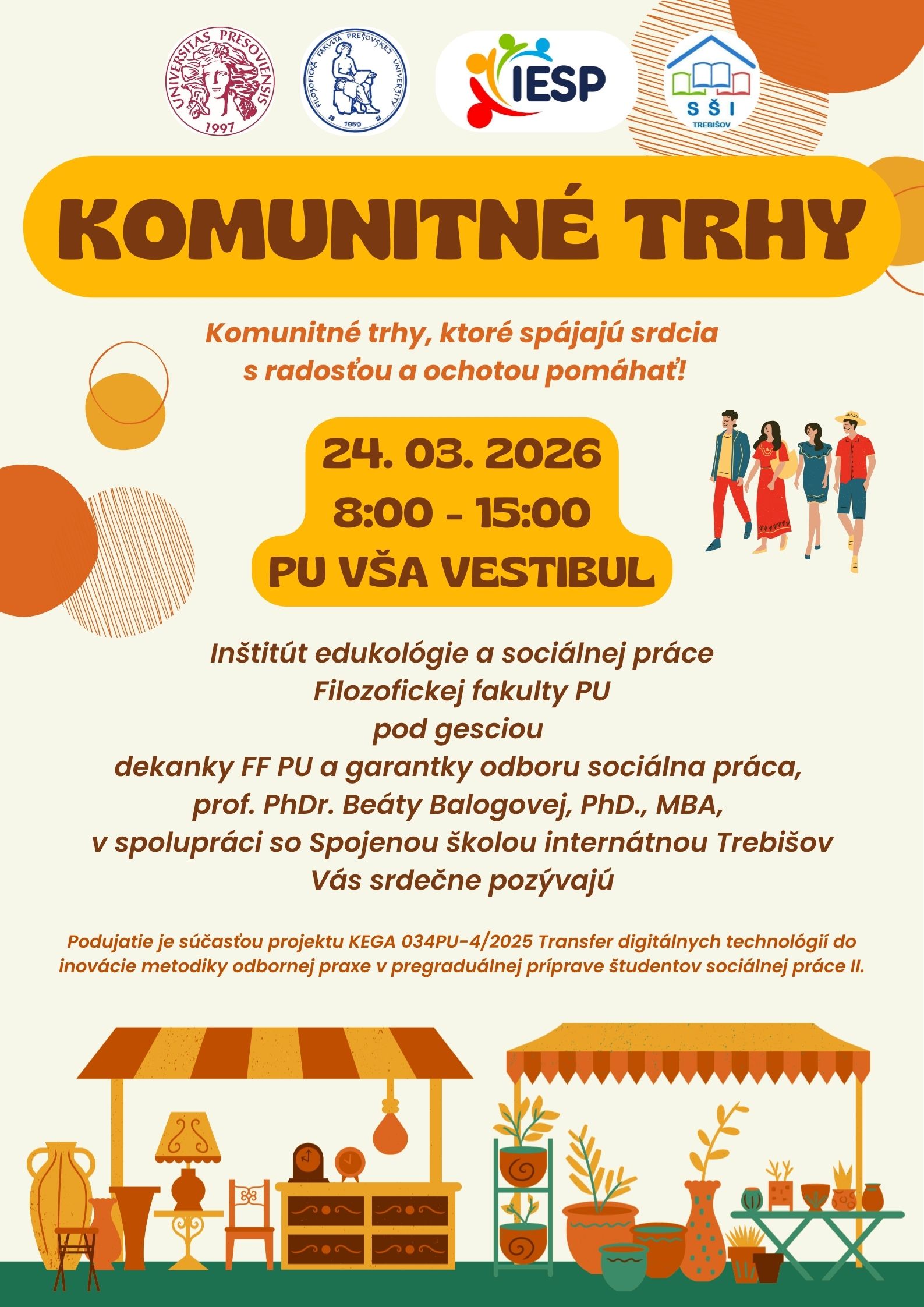 Pozývame Vás na predajné trhy organizované v spolupráci so Spojenou školou internátnou v Trebišove. Príďte podporiť tradičné podujatie IESP, zažiť jedinečnú atmosféru a nájsť originálne výrobky a dekorácie, ktoré vyrobili žiaci Spojenej školy internátnej v Trebišove pod vedením ich vyučujúcich. Tešíme sa na Vás!