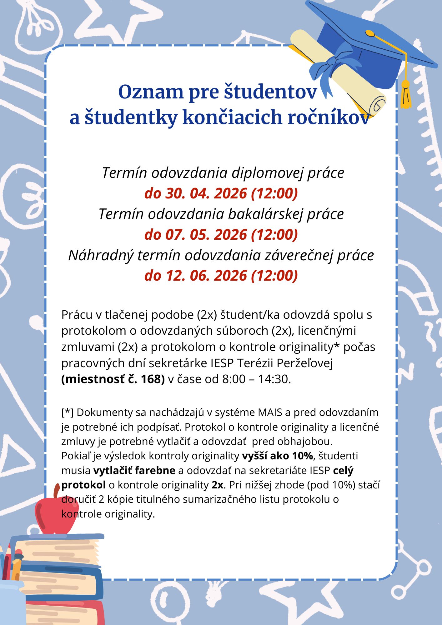 Oznam pre študentov a študentky končiacich ročníkov Galéria Galéria Aktualizoval(a): Michaela Skyba , 12.04.2026