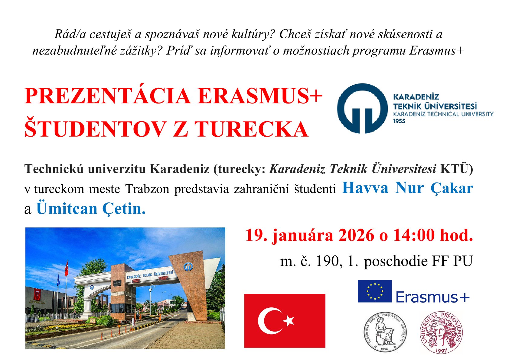 POZVÁNKA - Prezentácia Erasmus+ študentov z Turecka Galéria Galéria Aktualizoval(a): Gabriela Turisová , 19.01.2026