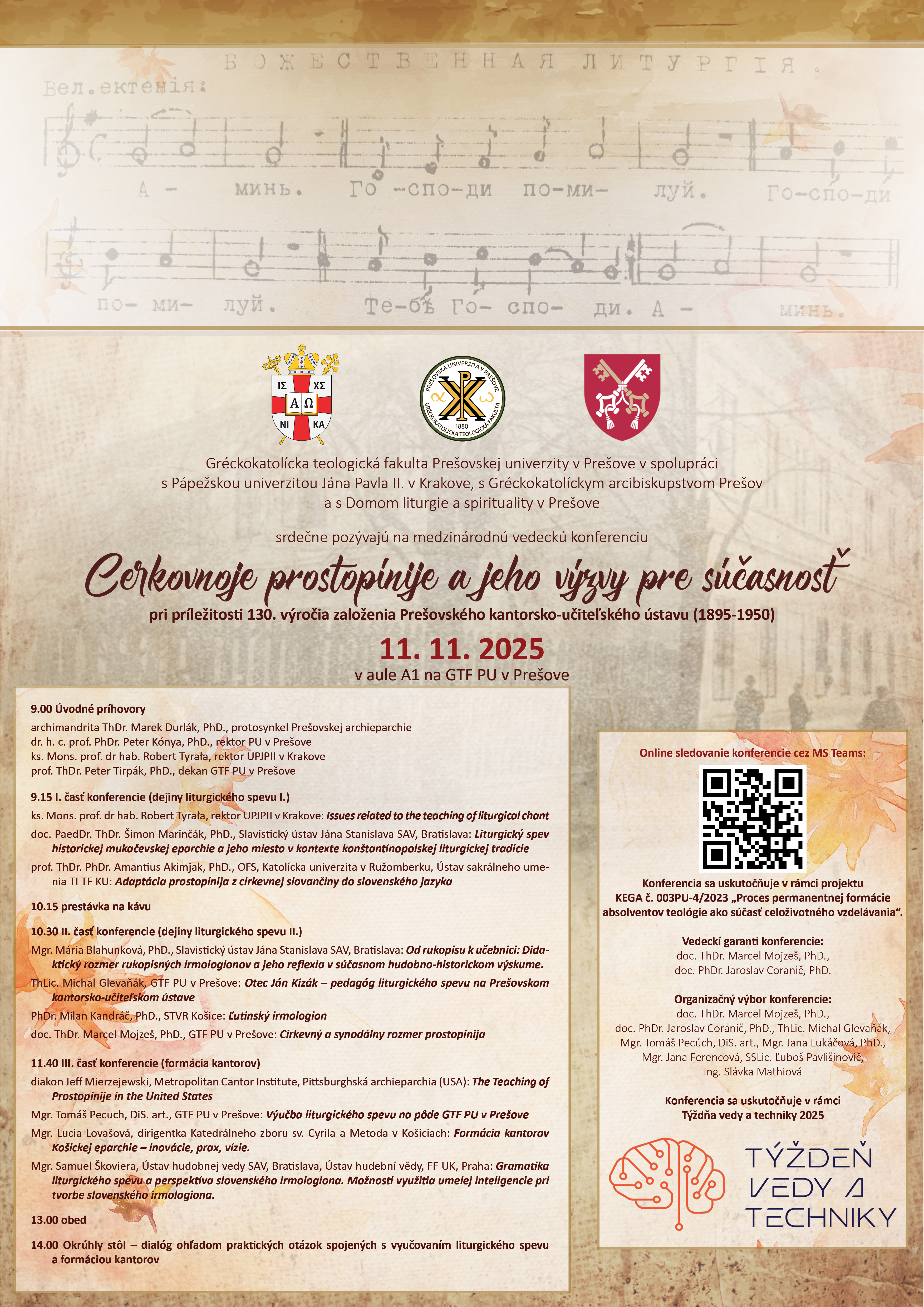 Cerkovnoje prostopinije a jeho výzvy pre súčasnosť 11.11.2025 aula A1 GTF PU Link na online konfrenciu cez MS Teams: https://teams.microsoft.com/v2/?meetingjoin=true#/l/meetup-join/19:meeting_ZTAyYjY0YTItN2U2ZC00YmQzLWJjNzAtMjk4OTkzOWY0MjBk@thread.v2/0?context=%7b%22Tid%22%3a%220cd103af-62fc-4208-a029-de5818de1d80%22%2c%22Oid%22%3a%22284a8d02-cbfe-410a-b520-247fcf23b926%22%7d&anon=true&deeplinkId=88a2f0a1-9946-476f-96cd-212626179d84 Galéria Galéria Aktualizoval(a): Valer Halečka , 05.11.2025
