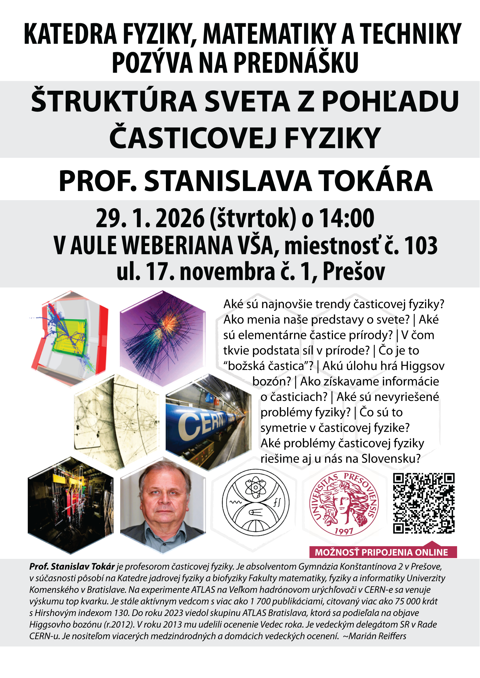 Pozvánka na prednášku prof. Stanislava Tokára, 29.1.2026, 14:00 hod. Galéria Galéria Aktualizoval(a): Gabriela Fecková , 26.01.2026