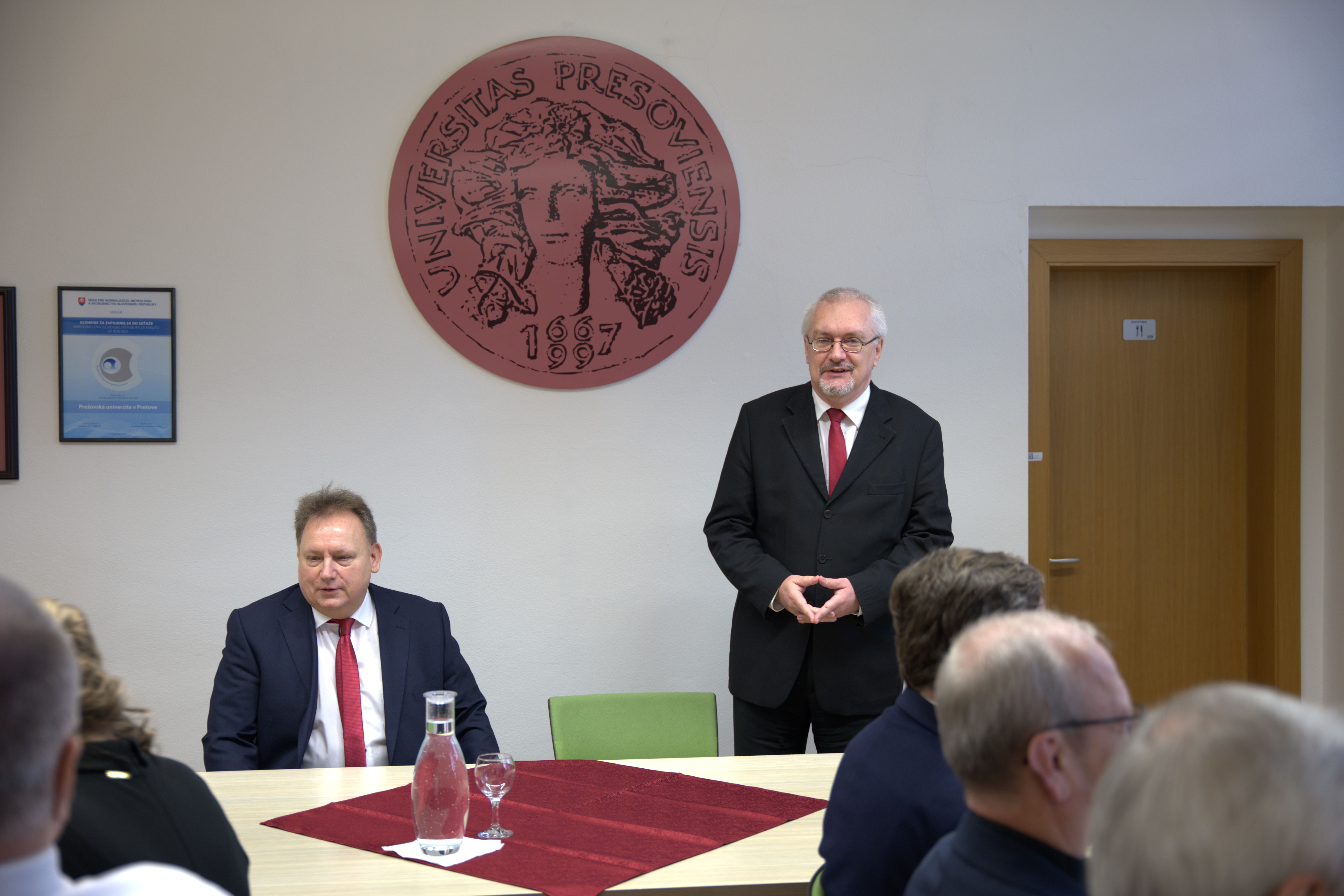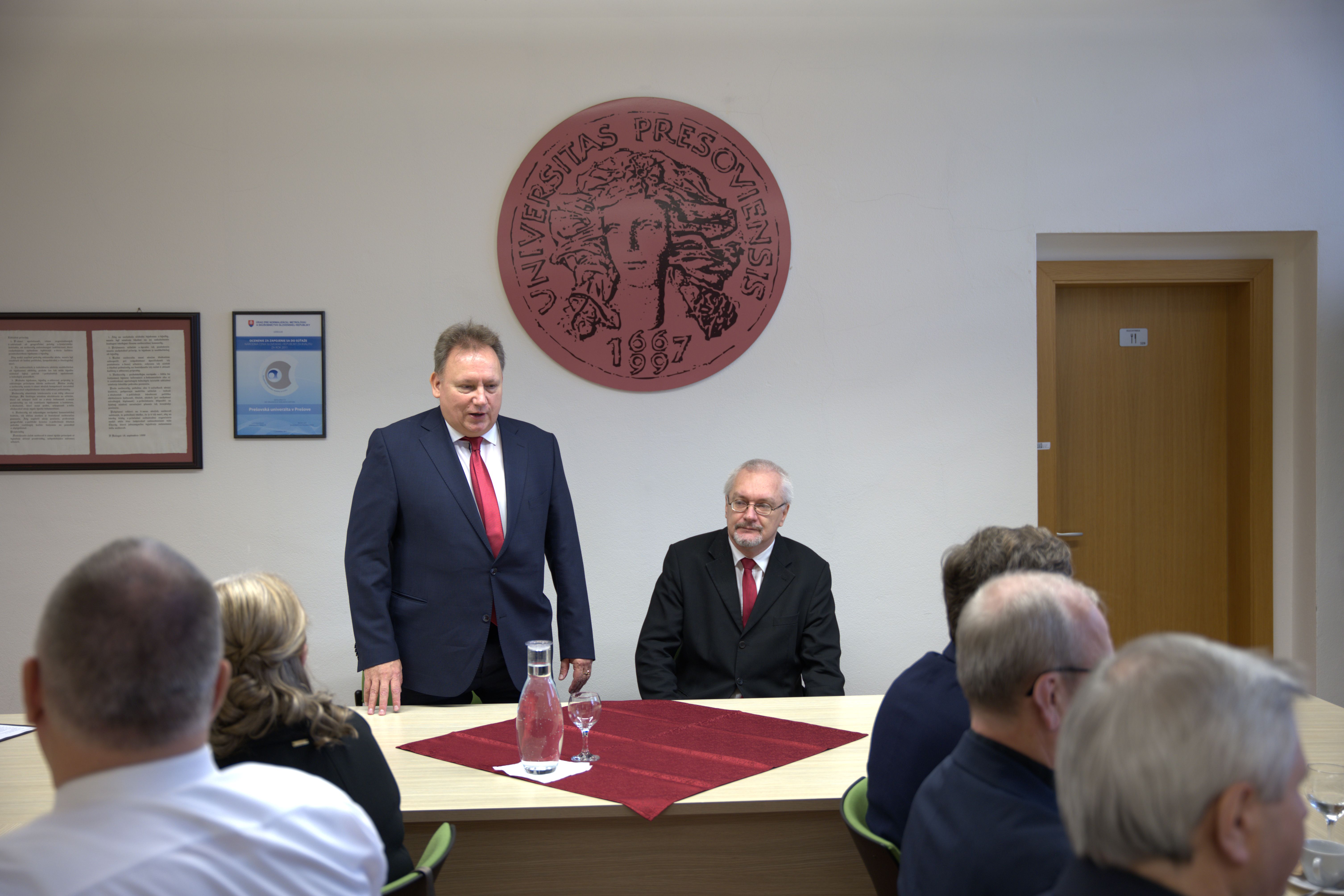 Vo svojom príhovore sa rektor PU prihovoril oslávencom so slovami úprimného uznania a vďaky: „Som rád, že sa stretávame pri príležitosti vašich životných jubileí. Všetci ste pôsobili a pôsobíte na našej univerzite nie krátky čas, prežili ste na nej roky, niektorí aj desaťročia. Venovali ste jej svoju energiu a tvorivosť. A mnohí z vás aj kúsok svojho zdravia. To všetko pre to, aby sa naša univerzita mohla ďalej rozvíjať a napredovať, za čo Vám úprimne veľmi pekne ďakujem.“