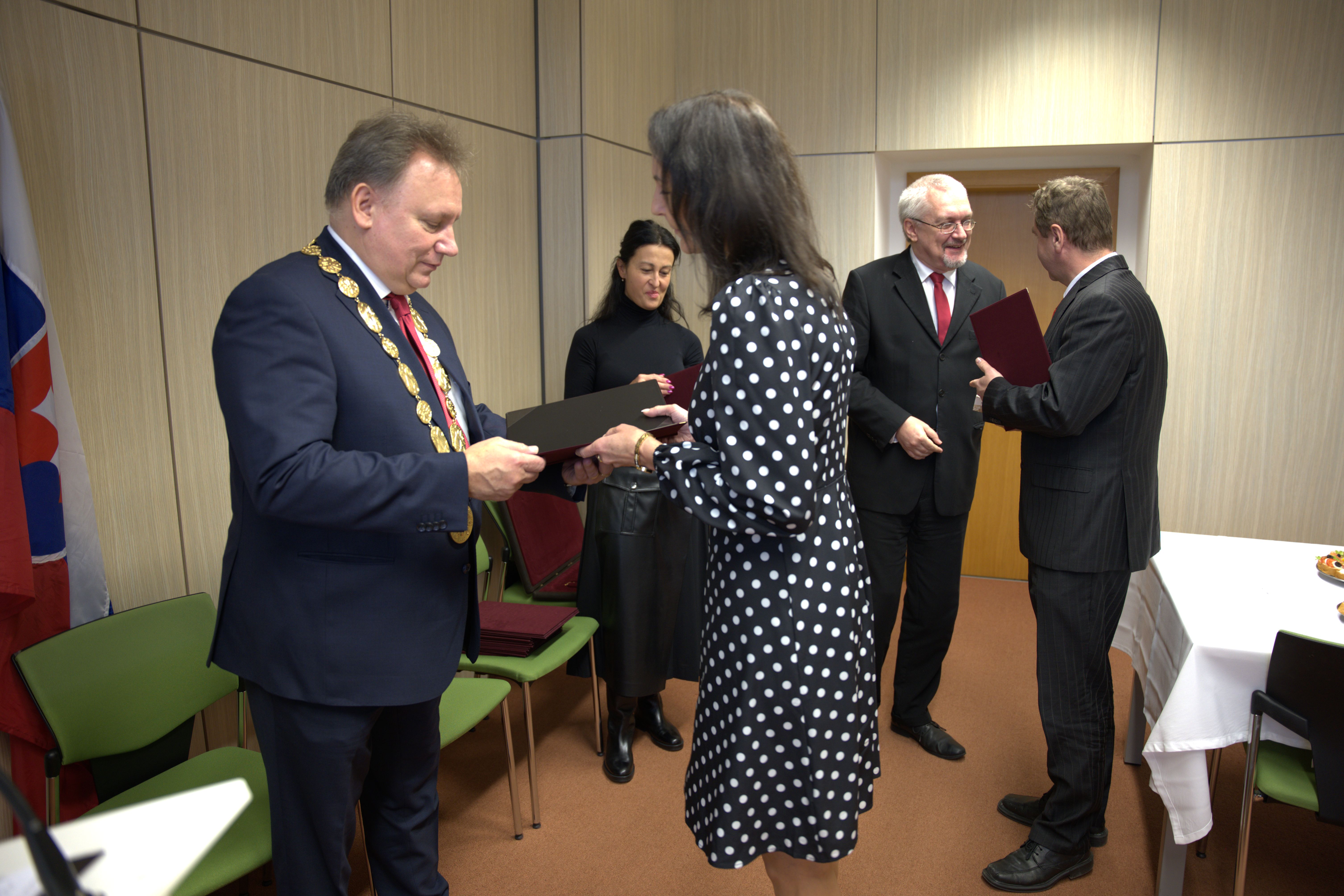 Jubilantom rektor prof. Peter Kónya poprial najmä veľa zdravia a radosti, osobnej spokojnosti a ďalších úspechov a osobne im udelil ďakovné listy. Prorektor prof. Peter Adamišin im odovzdal symbolické perá. Slávnostný akt bol zavŕšený prípitkom a neformálnym posedením pri malom občerstvení.