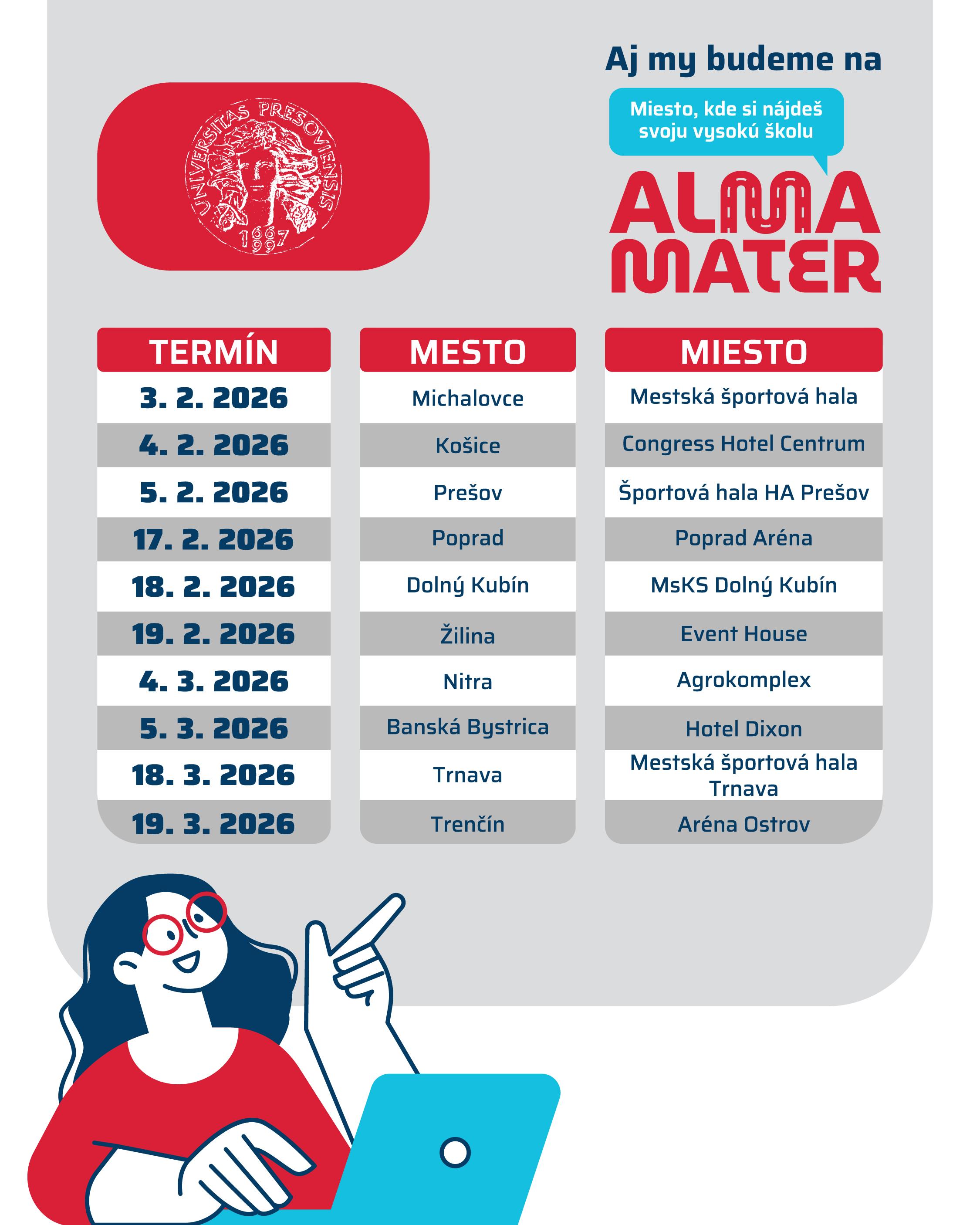 Viac info nájdete na www.unipo.sk v našom kalendári, na sociálnych sieťach a na https://www.minedu.sk/veltrh-vysokych-skol-alma-mater/