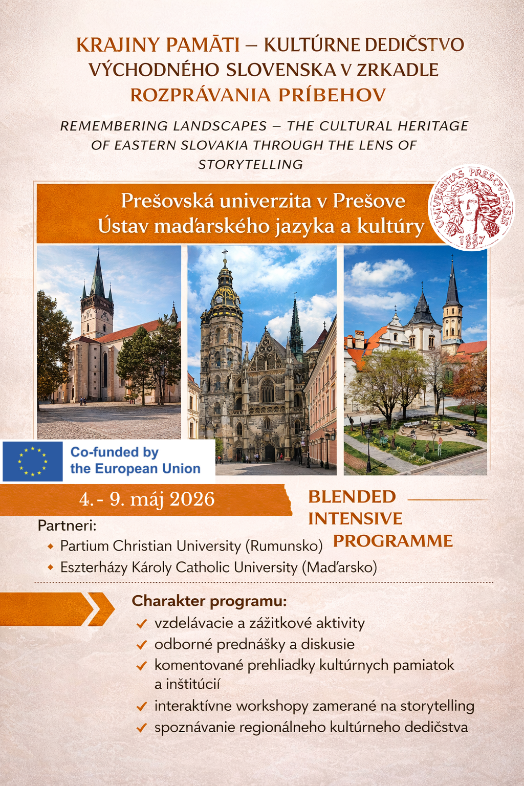 Blended Intensive Programme - Memory Landscapes – The Cultural Heritage of Eastern Slovakia Through the Lens of Storytelling Galéria Galéria Aktualizoval(a): Zdenka Tomko Medoňová , 13.04.2026