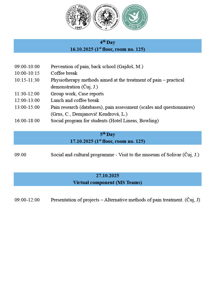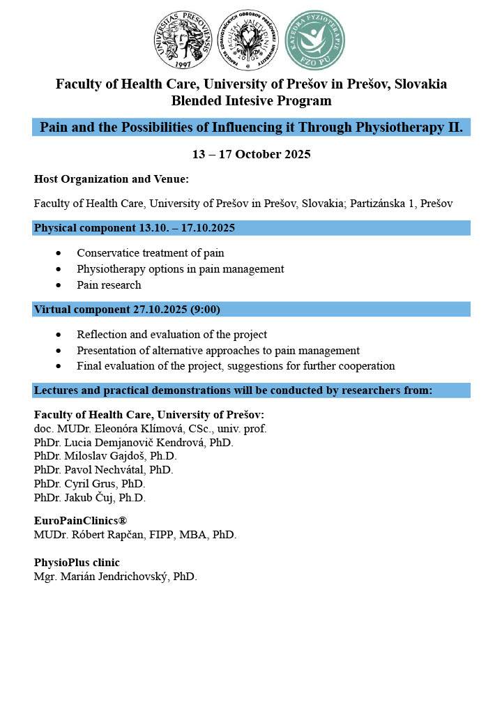 Blended Intensive Programme - Physioterapy Galéria Galéria Aktualizoval(a): Jana Homolová , 14.10.2025