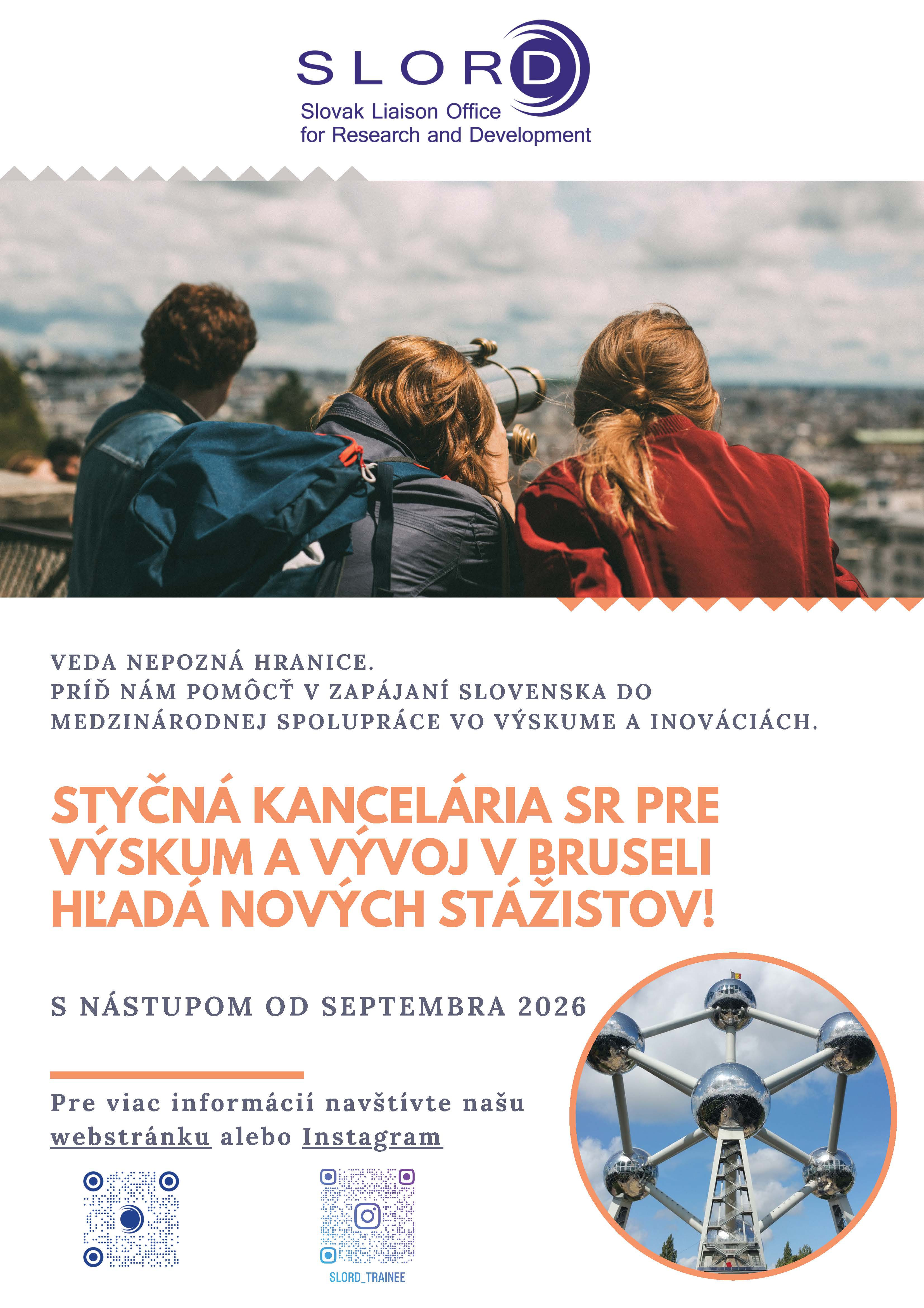 Možnosti stáže pre študentov slovenských vysokých škôl v Styčnej kancelárii SR pre výskum a vývoj v Bruseli (SLORD) Aktualizoval(a): Jana Homolová , 02.03.2026