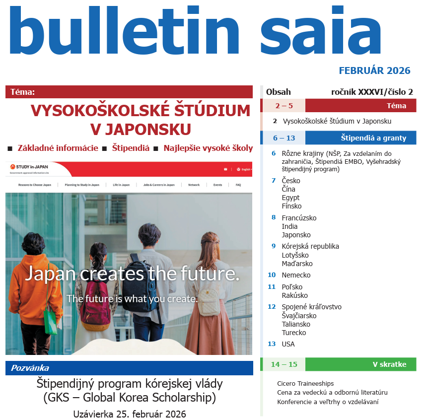 Témou februárového čísla je Vysokoškolské štúdium v Japonsku.